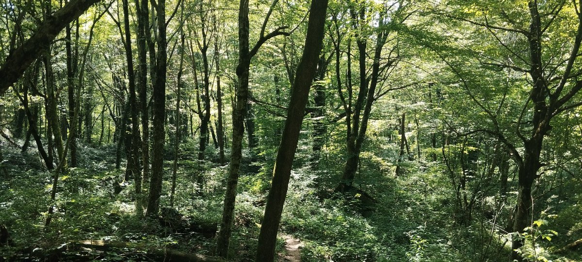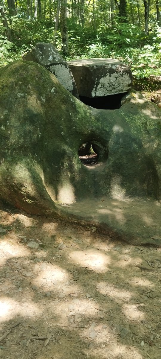 В общем, как и полагается, от водопада "Борода Берендея" пошли дальше по маркированной тропе. Сначала дорога идет вдоль ручья, затем уходит в лес. Тропа настолько маркированная, что там потеряться невозможно, даже при всем желании. Вот там как раз и есть крутые участки, а нам еще и поваленное поперек тропы дерево попалось. Преодолев этот путь, вышли к участкам СНТ и далее тропа вела по склону с красивыми видами. Хотелось там и остаться, и смотреть-смотреть... Дальше мы вышли к дольмену "Берендей", от него тропа влево - каменный завал Святилище и конечная точка этой тропы - мегалит Страж. Там же смотровая площадка.