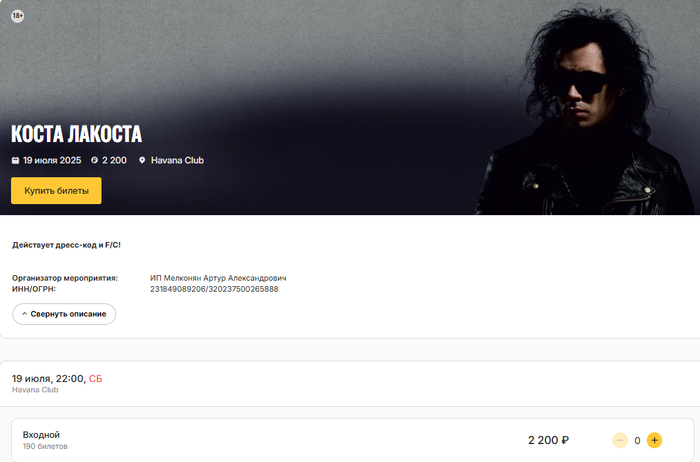 Все, ниже опубликованные события в Лазаревском ЦНК, кроме одного - некто Коста Лакоста (я сначала подумал, что это молодой Кирк Хэммет:ag:) - Havana Club.