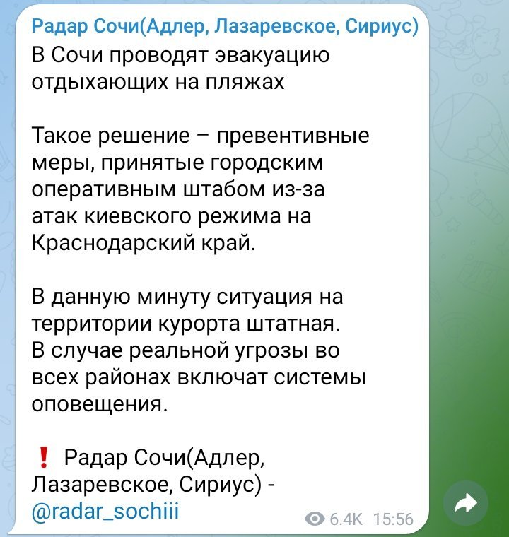 объявили беспилотную опасность, гудят сирены.-----------------Знакомая живет в Туапсе. Была атака беспилотного катера(( не смогли расстрелять.  Два  человека пострадали(((