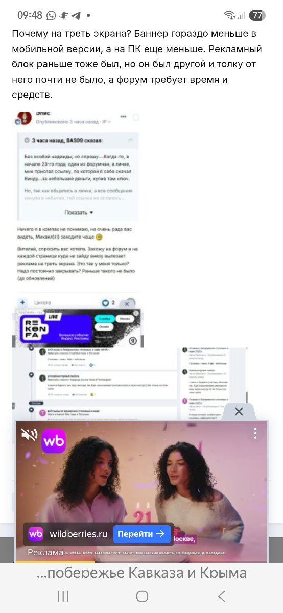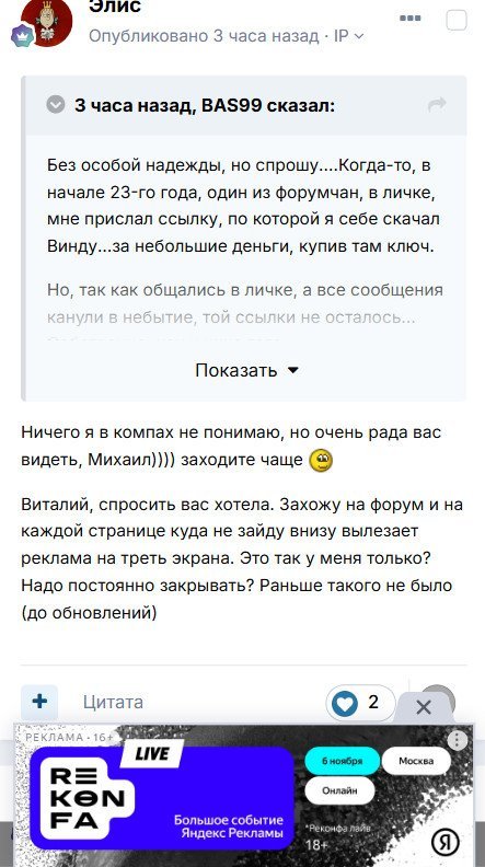 Виталий, спросить вас хотела. Захожу на форум и на каждой странице куда не зайду внизу вылезает реклама на треть экрана. Это так у меня только? Надо постоянно закрывать? Раньше такого не было (до обновлений)