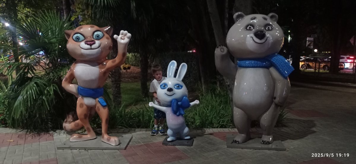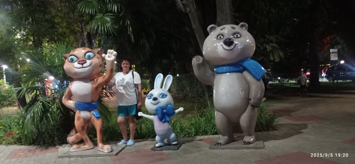 Бесплатная анимация в Адлеровском парке по вечерам. Потом живая музыка - саксофон, круто мужчина играл.