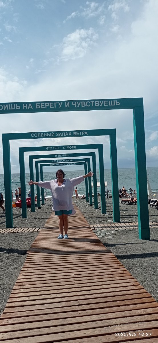 Мы в Адлере! Погода чудесная, очень тепло. Море, конечно, на любителя 😊, но я любитель, а Женя моя нет. Но сидела на пляже, терпеливо ждала, пока я купалась и сохла.