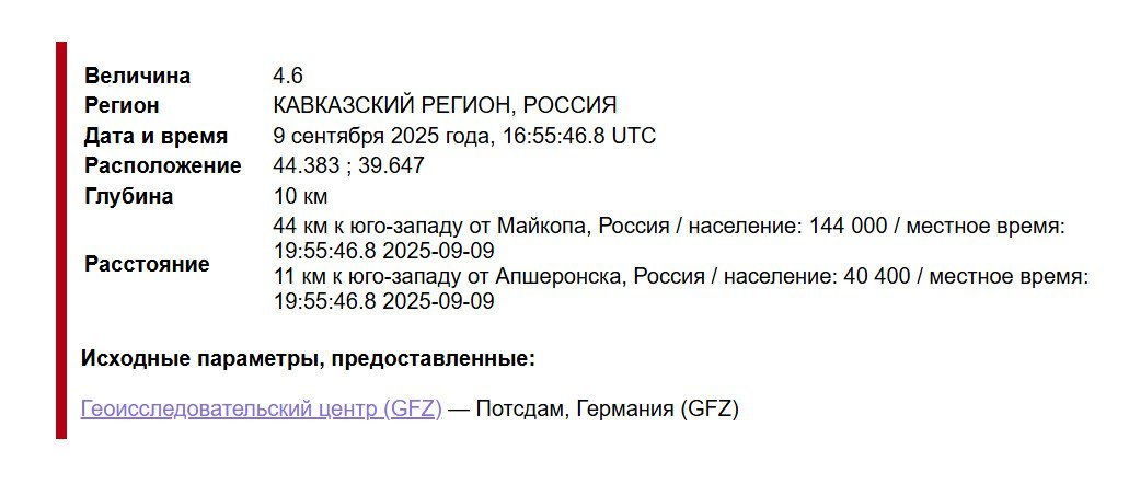 — Эпицентр в 27 км от центра Сочи, гипоцентр в 27,5 км от центра Сочи
