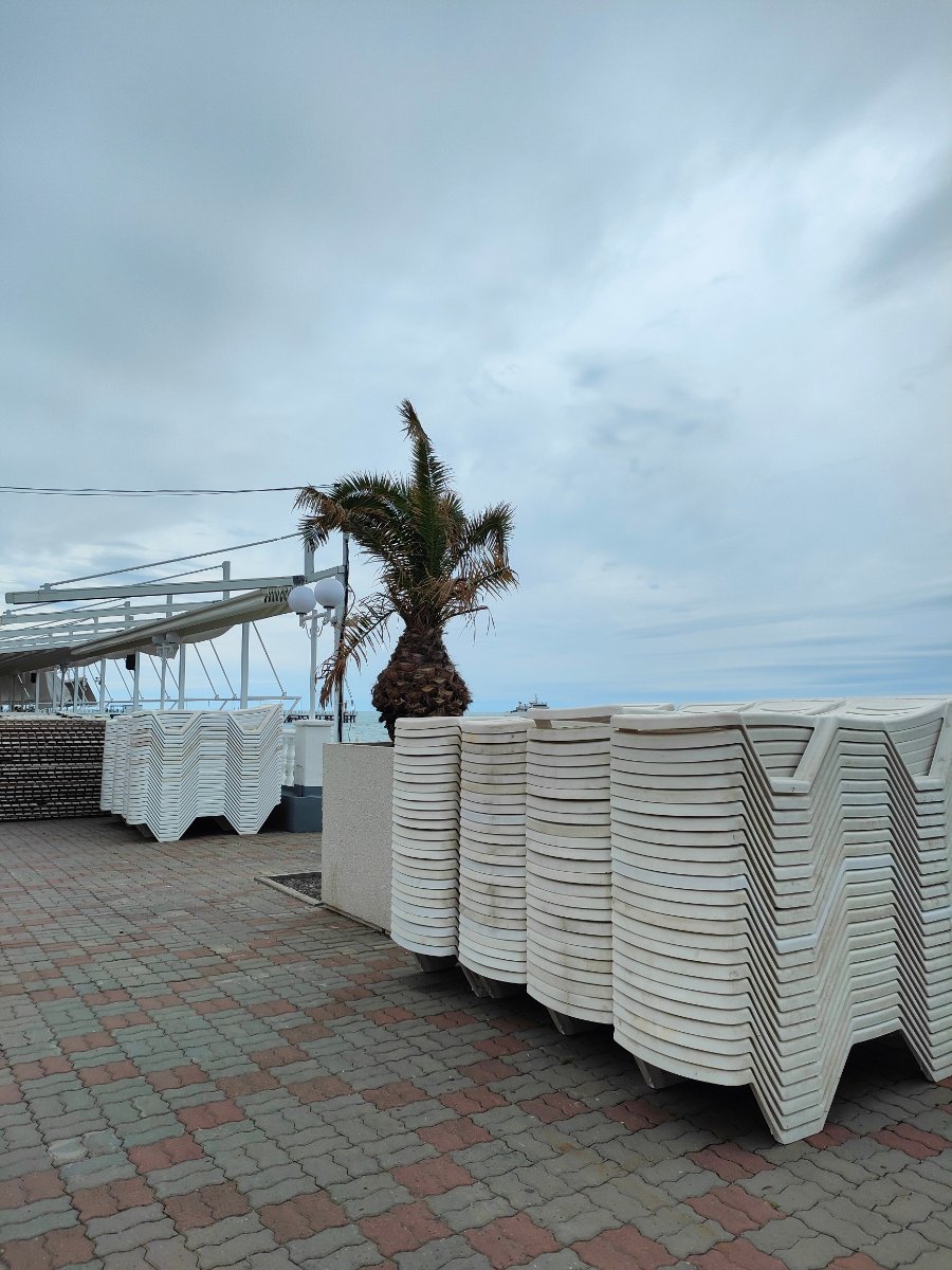 С пляжа убрали лежаки и часть дорожек, видимо , будет шторм