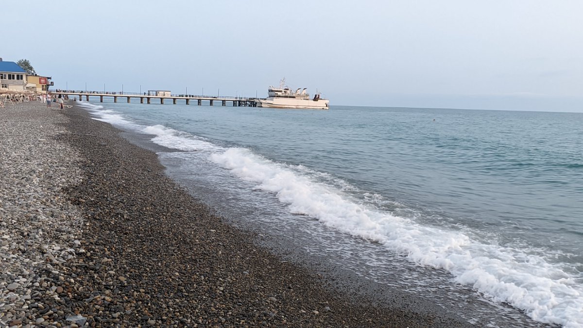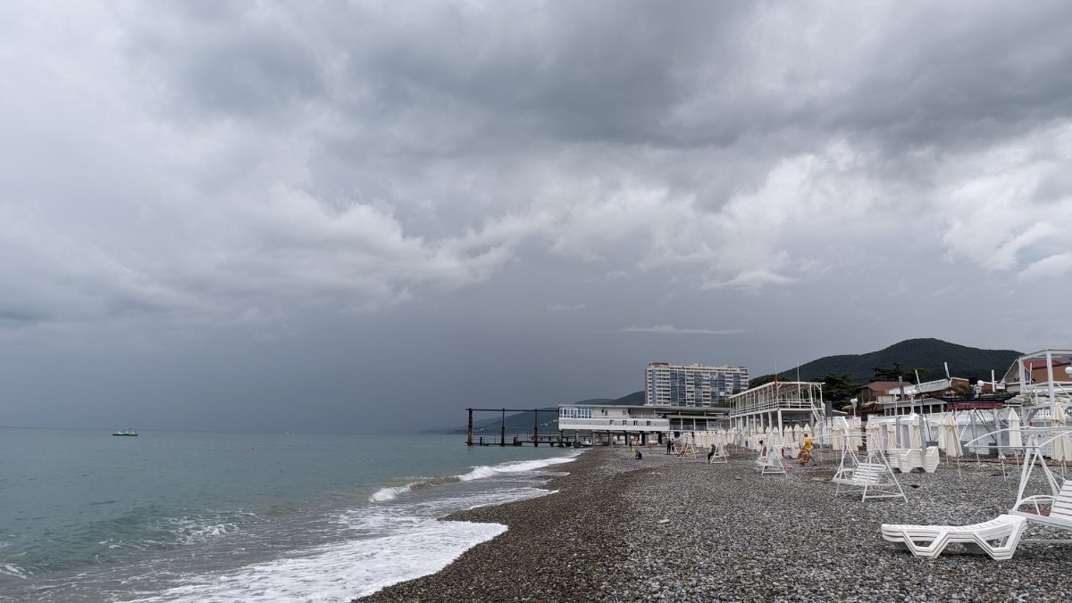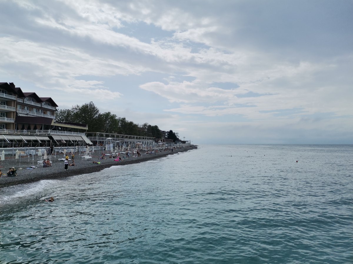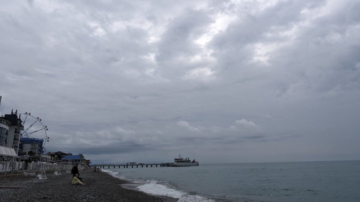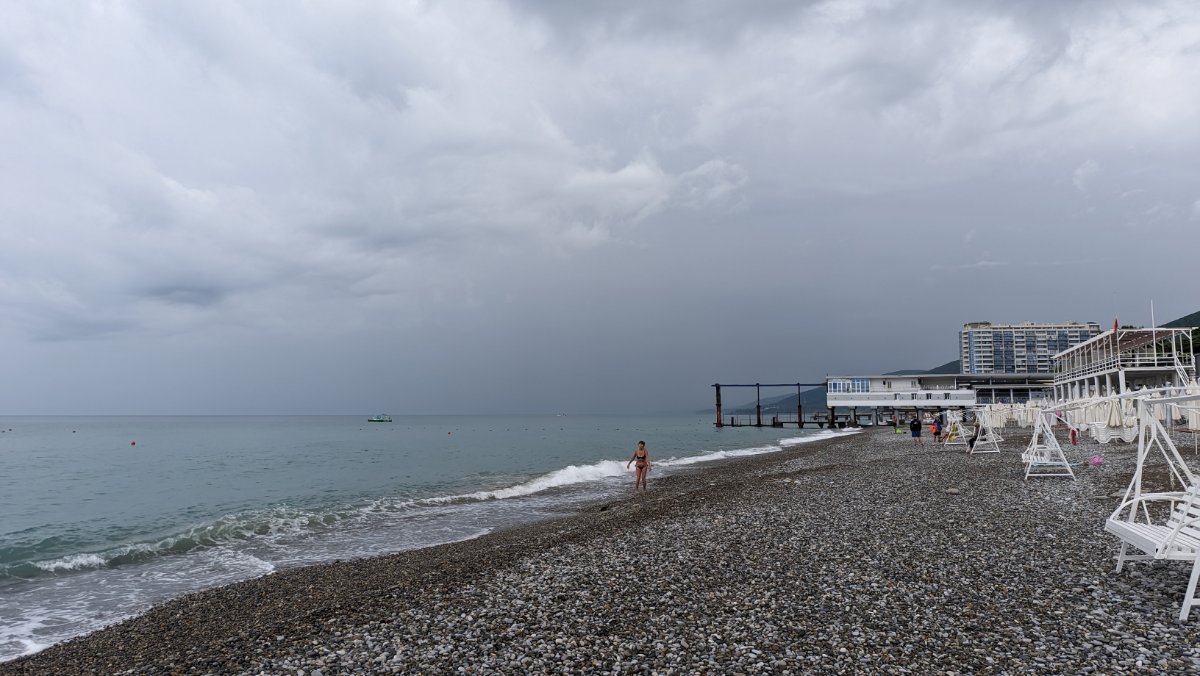 Сегодня пасмурно, временами мелкий дождик накрапывал, мы съездили в Магнит, да на берегу посидели, подышали морским воздухом пока дождика не было. Народу мало, на берегу практически никого. Местные говорят давно не было такой погоды, как сейчас. Обедали в номере, купили готовой еды в Магните.