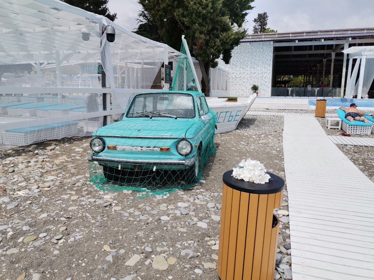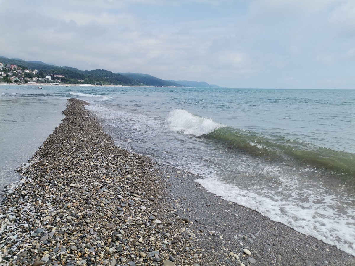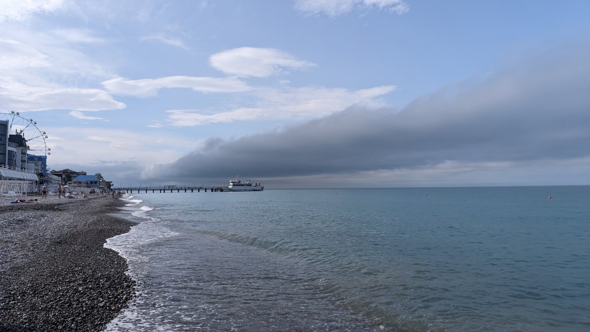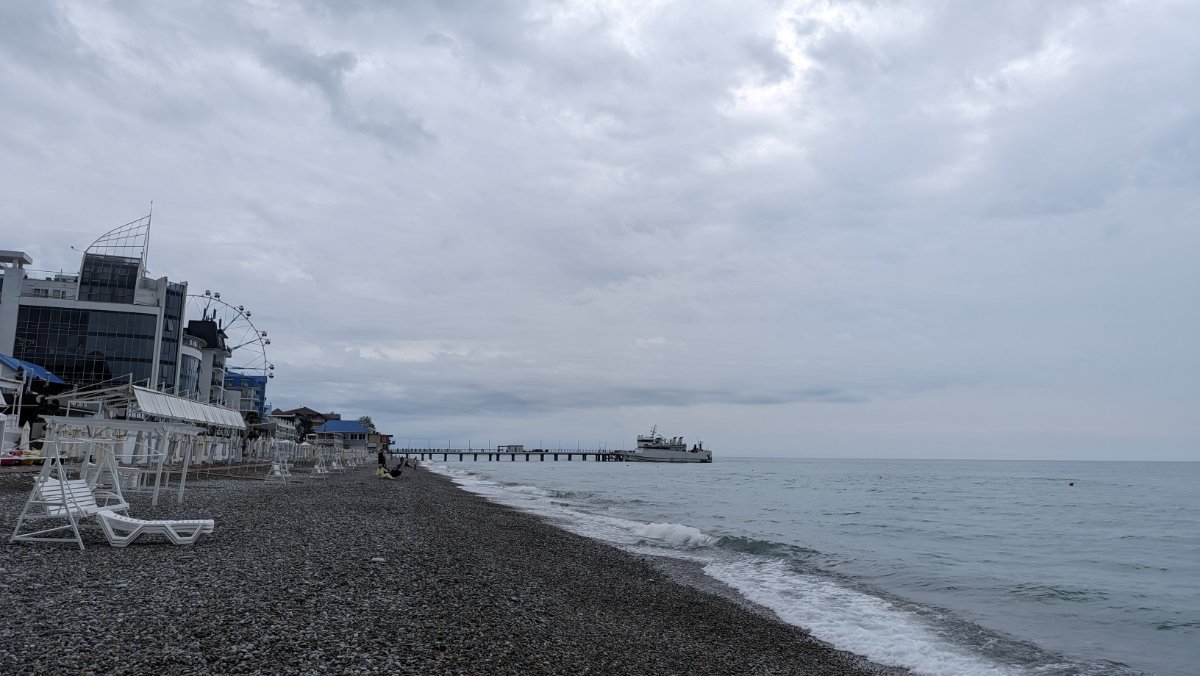 Сегодня пасмурно, временами мелкий дождик накрапывал, мы съездили в Магнит, да на берегу посидели, подышали морским воздухом пока дождика не было. Народу мало, на берегу практически никого. Местные говорят давно не было такой погоды, как сейчас. Обедали в номере, купили готовой еды в Магните.