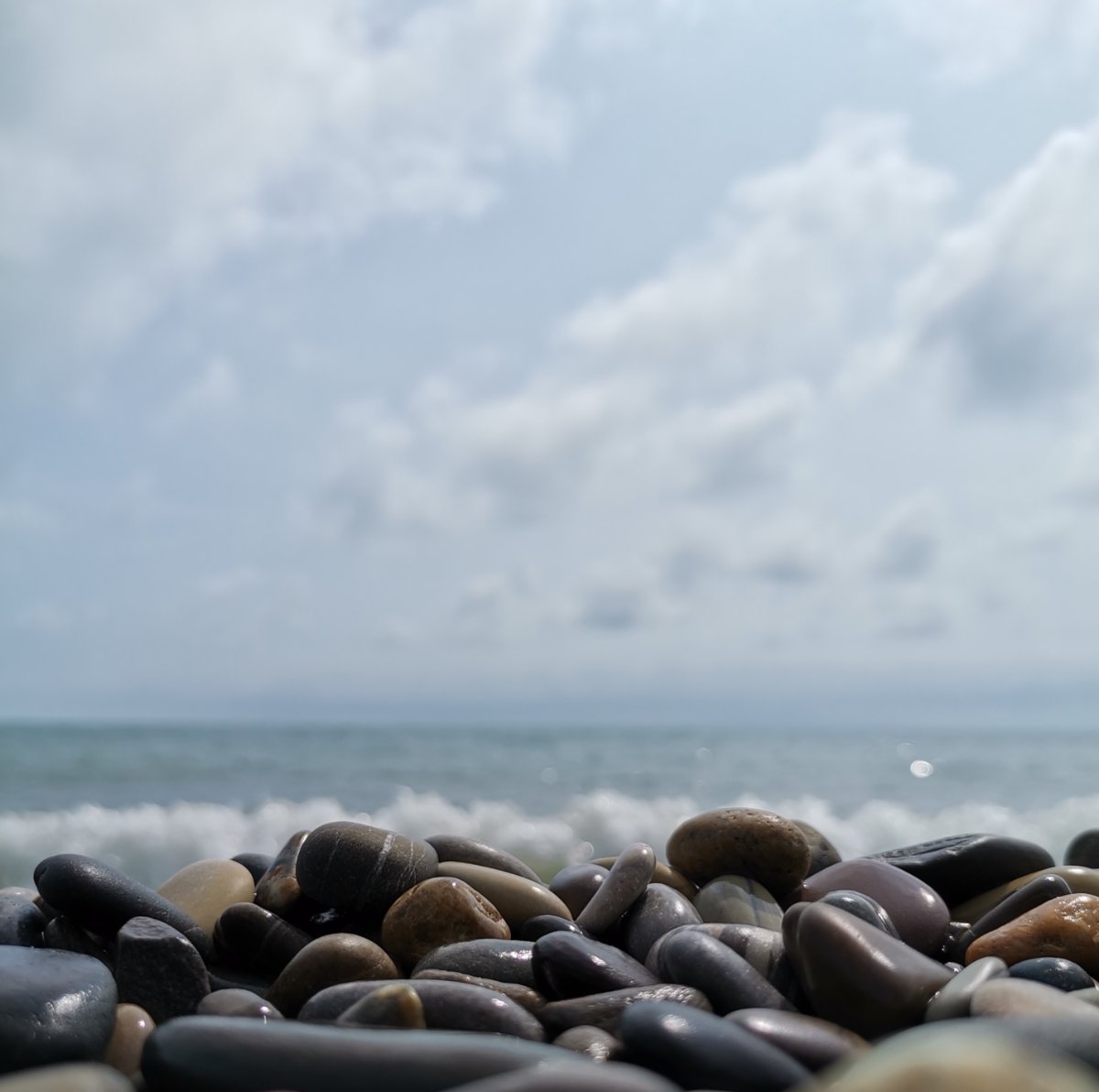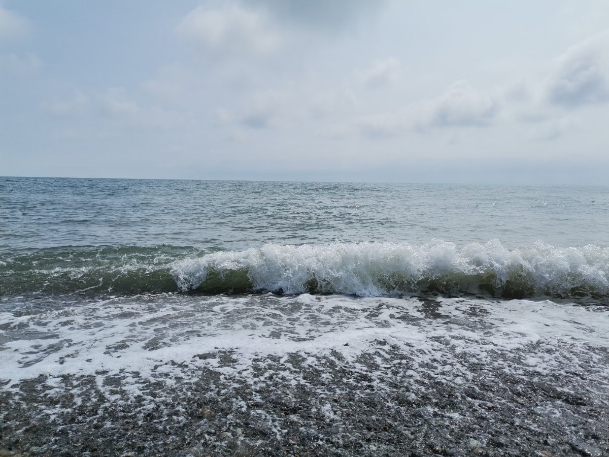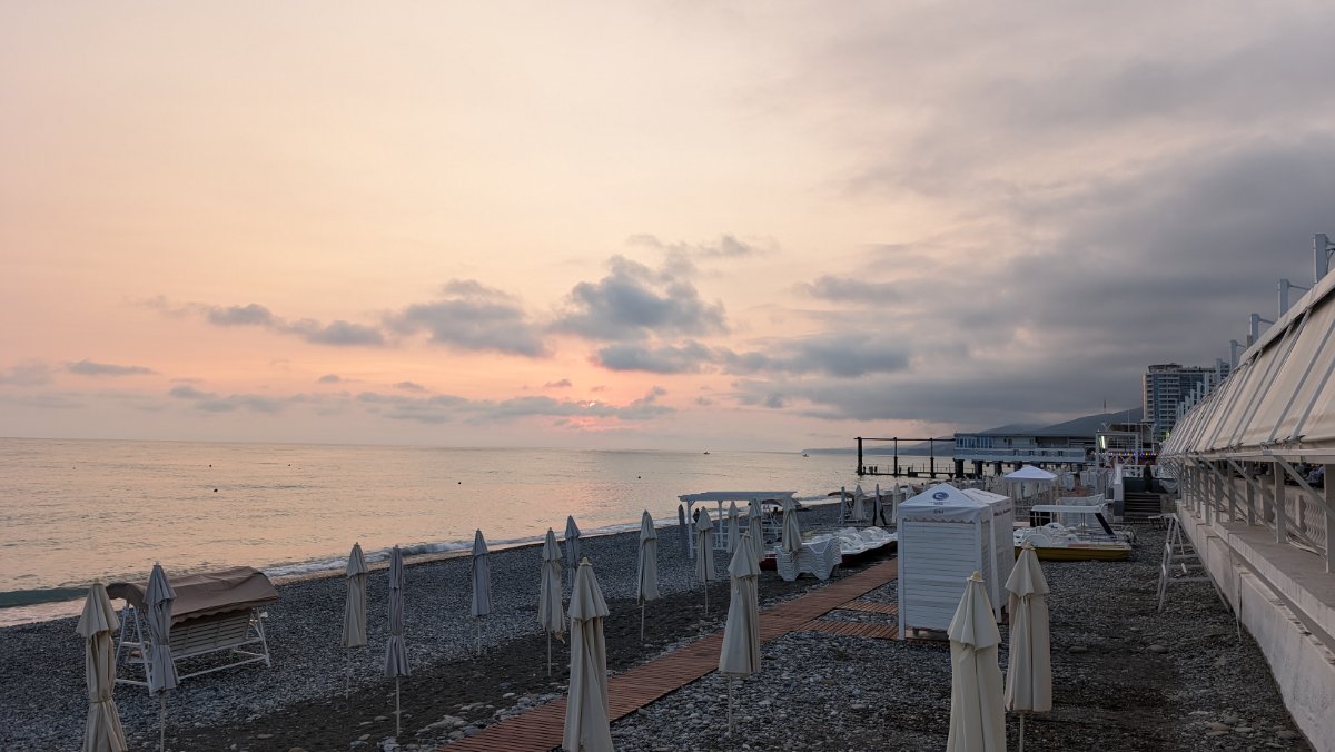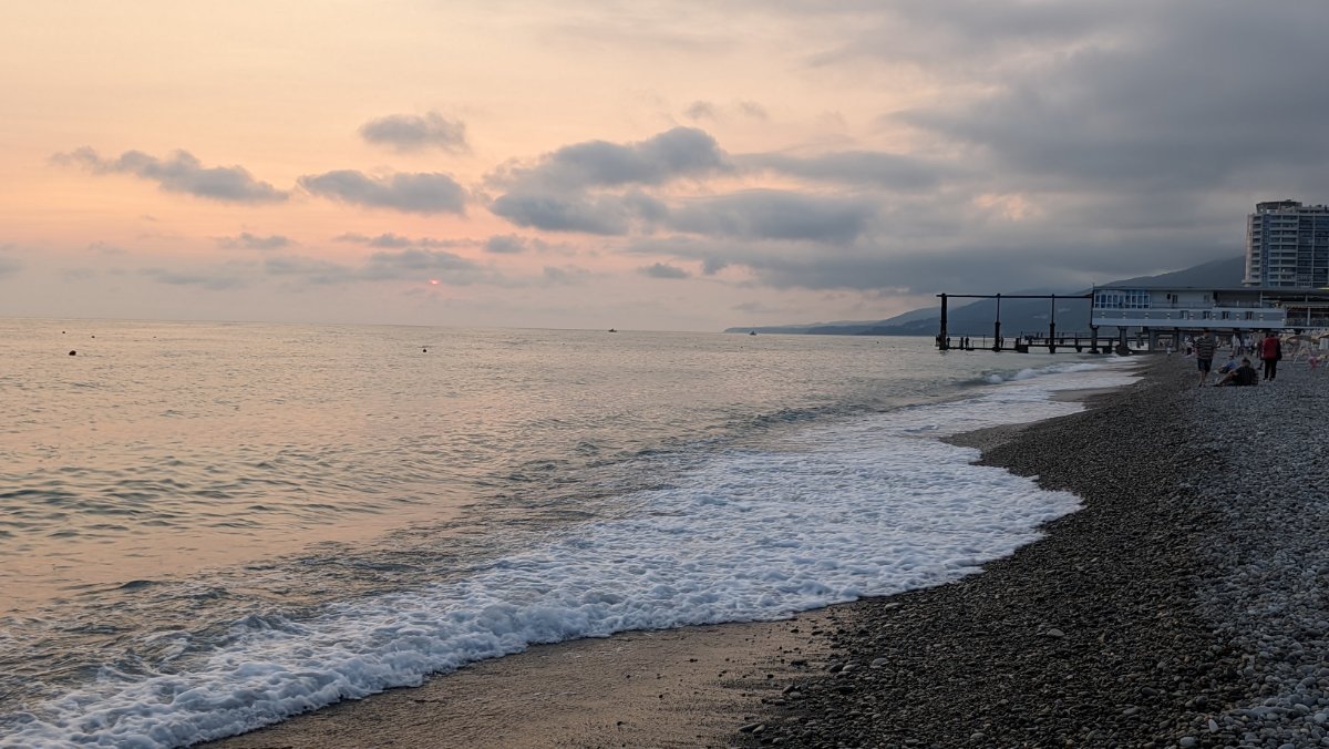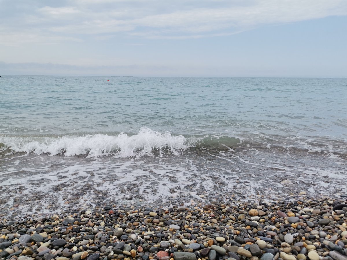 Совсем пустой любимый пляж у Судоверфи. Но, стоило мне присесть на камушки, пришло большое семейство и устроилось в паре метров от меня. На абсолютно пустом пляже