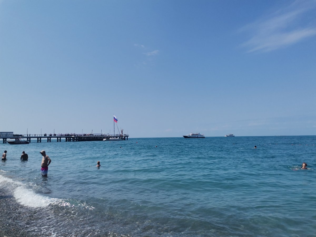 На причале сегодня утром было торжественное поднятие Российского флага над Чёрным морем. Был гимн, музыка, народ в национальных костюмах.