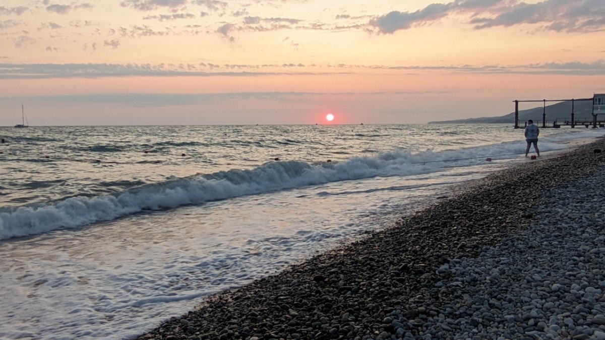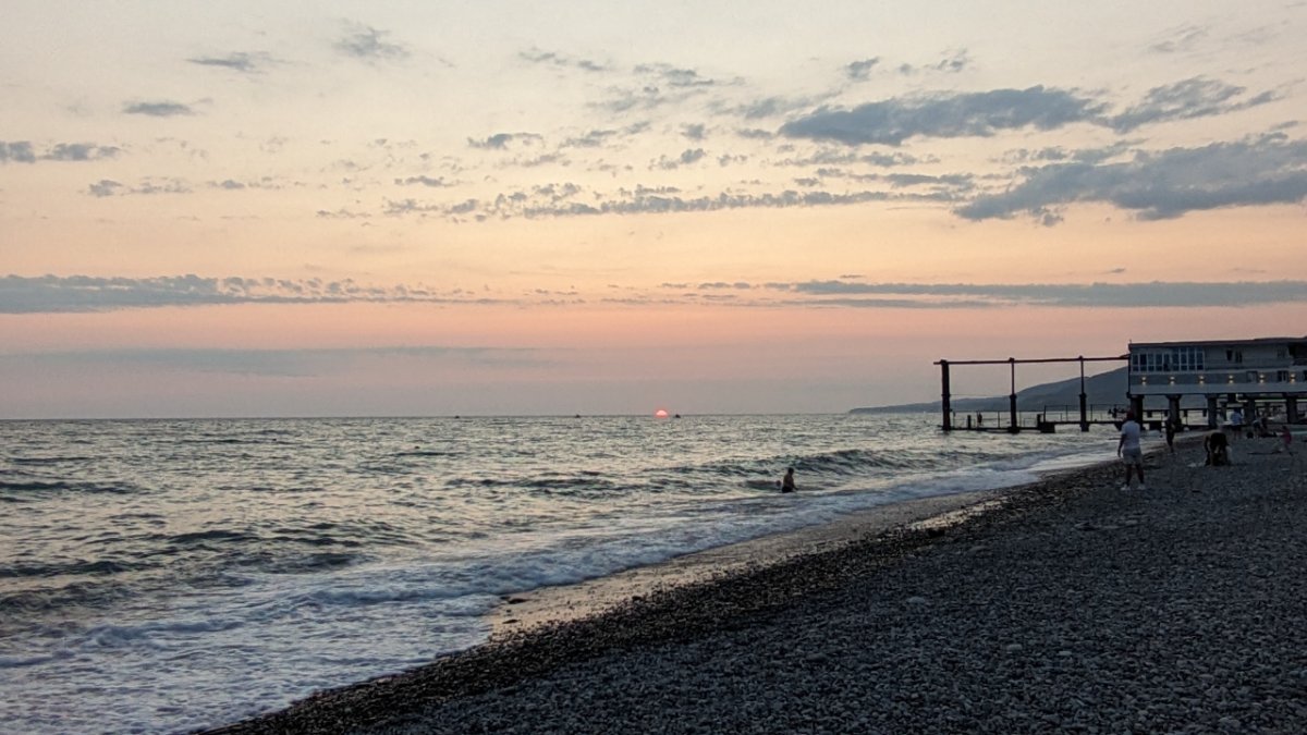 Добрый день! Вот и мы добрались до места. Ехали, ехали и приехали. Выходя на станциях тепло не чувствовалось. Вечером даже кофту одела. С утра вышли в 6 часов в Туапсе, было ощутимо свежо. Сейчас чуть разогрелись, прошлись в 8-9 утра по берегу моря, купающих было ещё мало. Покушали в Бристоле. Сейчас пока отдыхаем, вещи разбираем, моемся:bq: