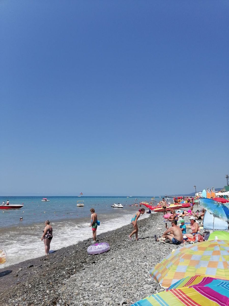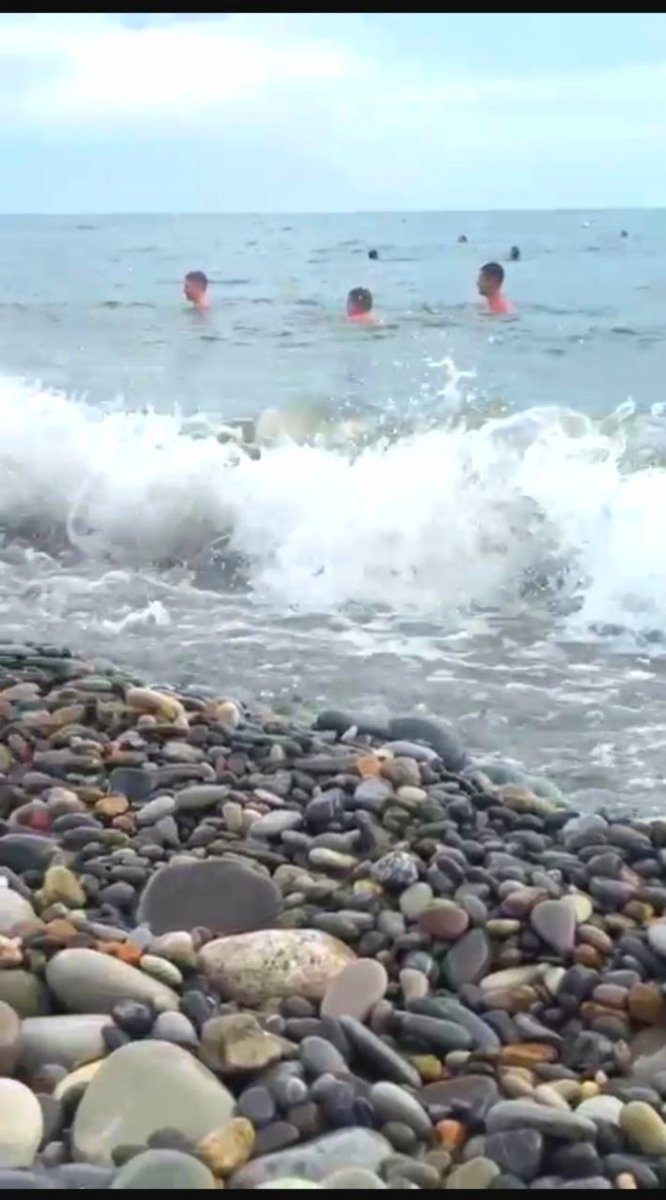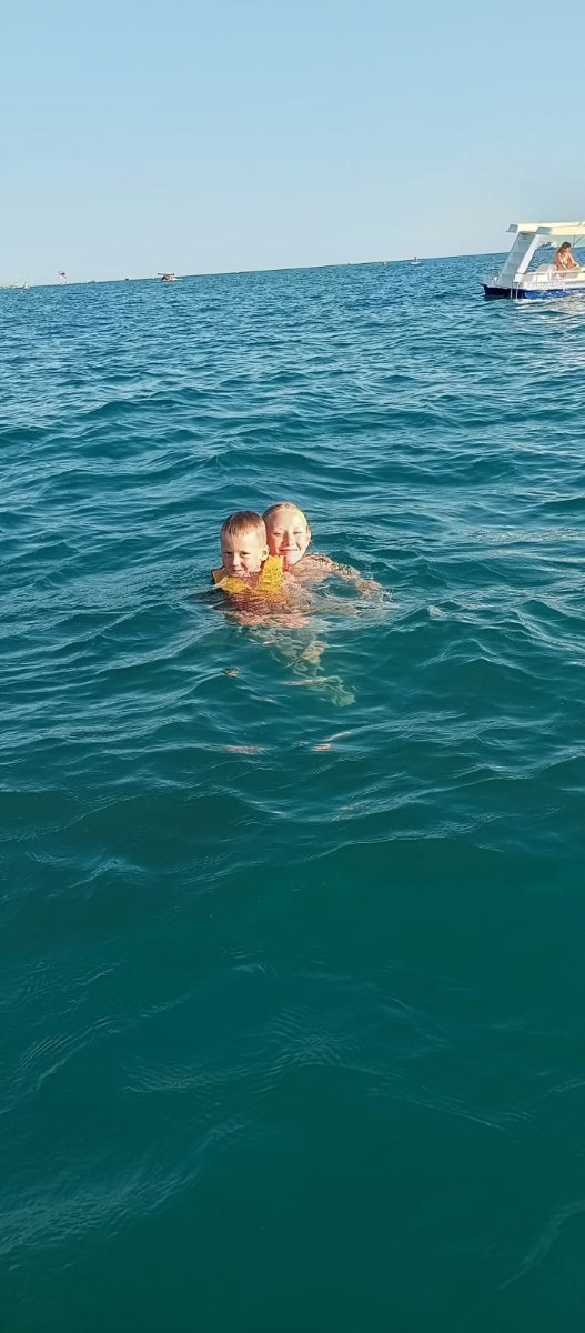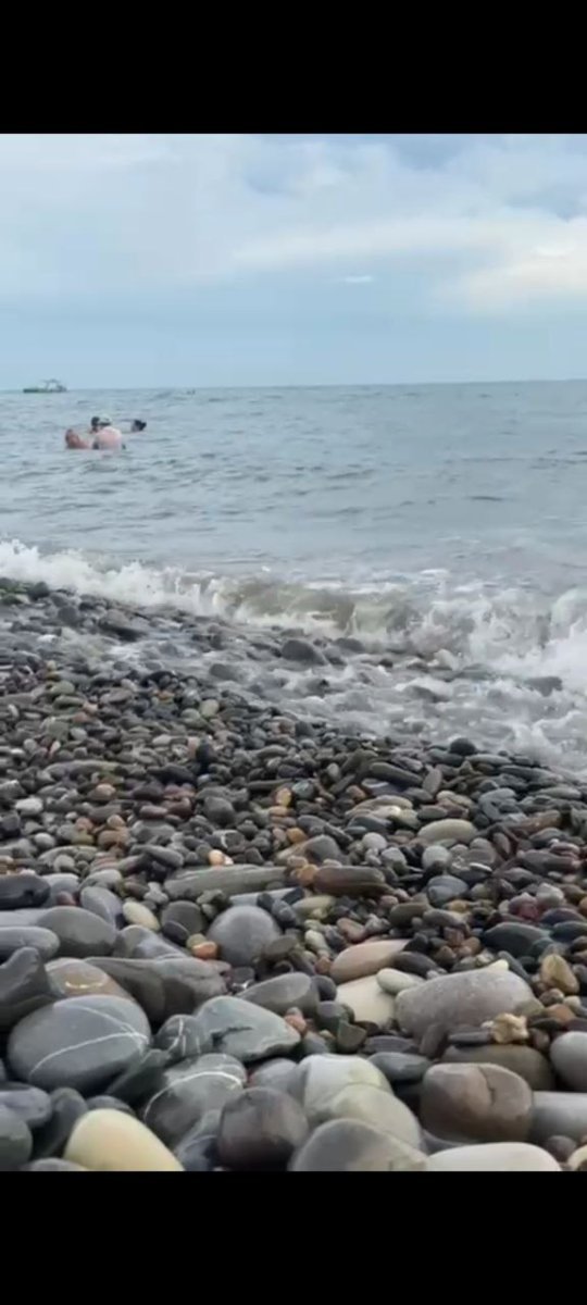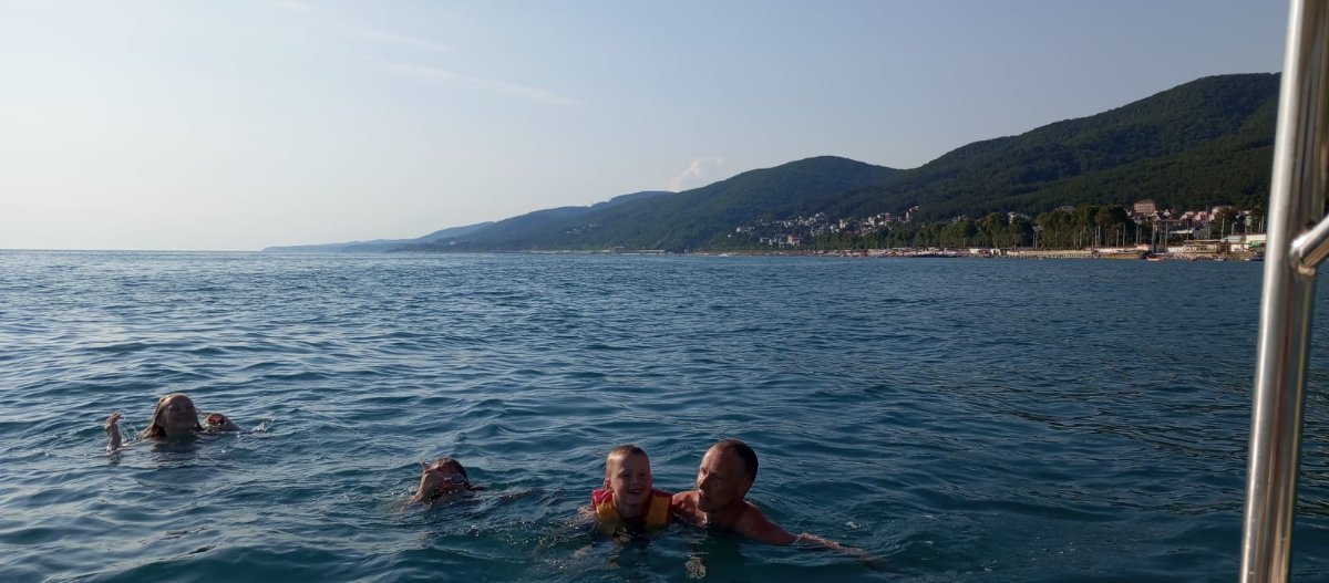 Дети с самого первого дня просили. И вот звёзды сошлись - то есть море успокоилось) Течение было сильное, в сторону Сочи. Устали бороться и прицепились к бую карабином. Водичка была очень тёплая, классно провели время!