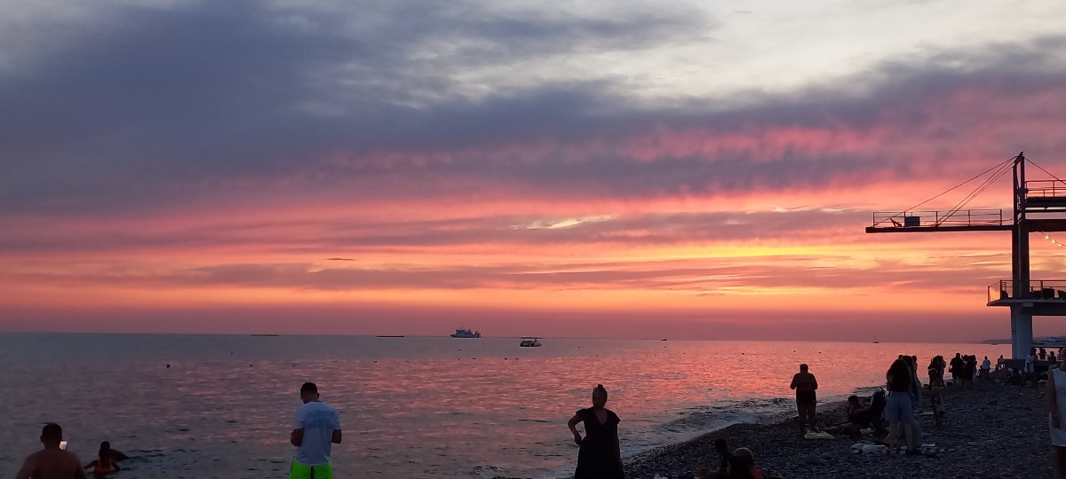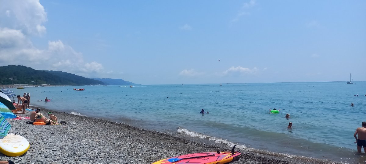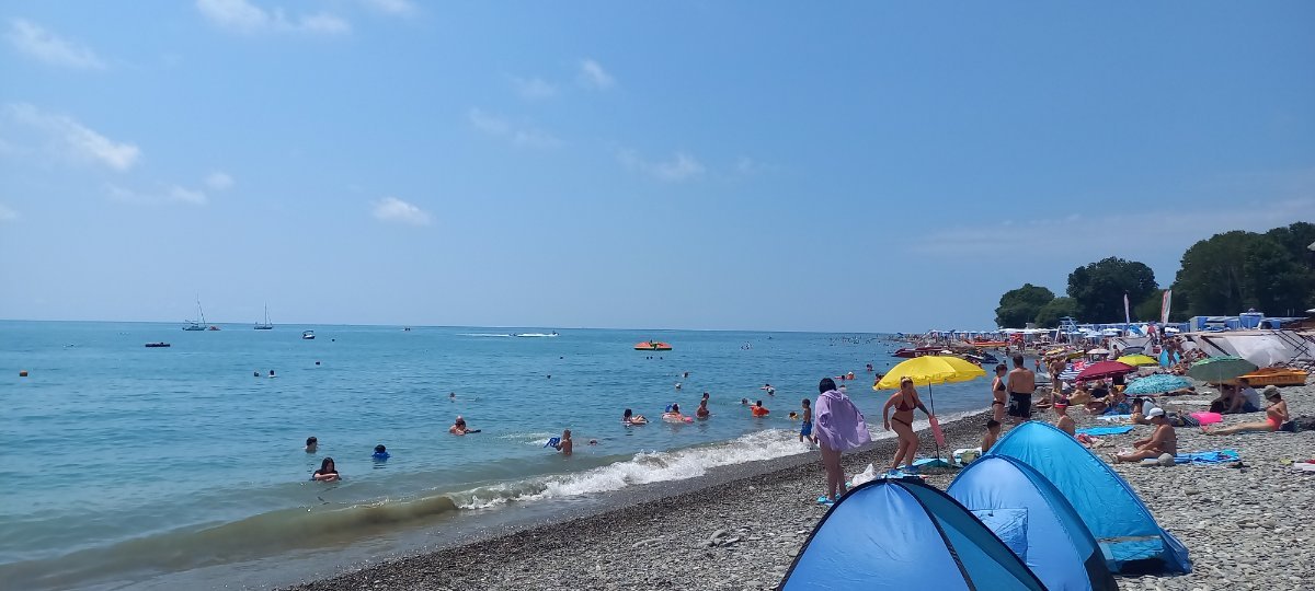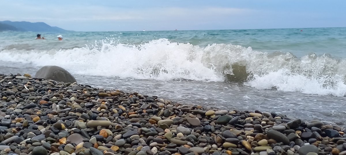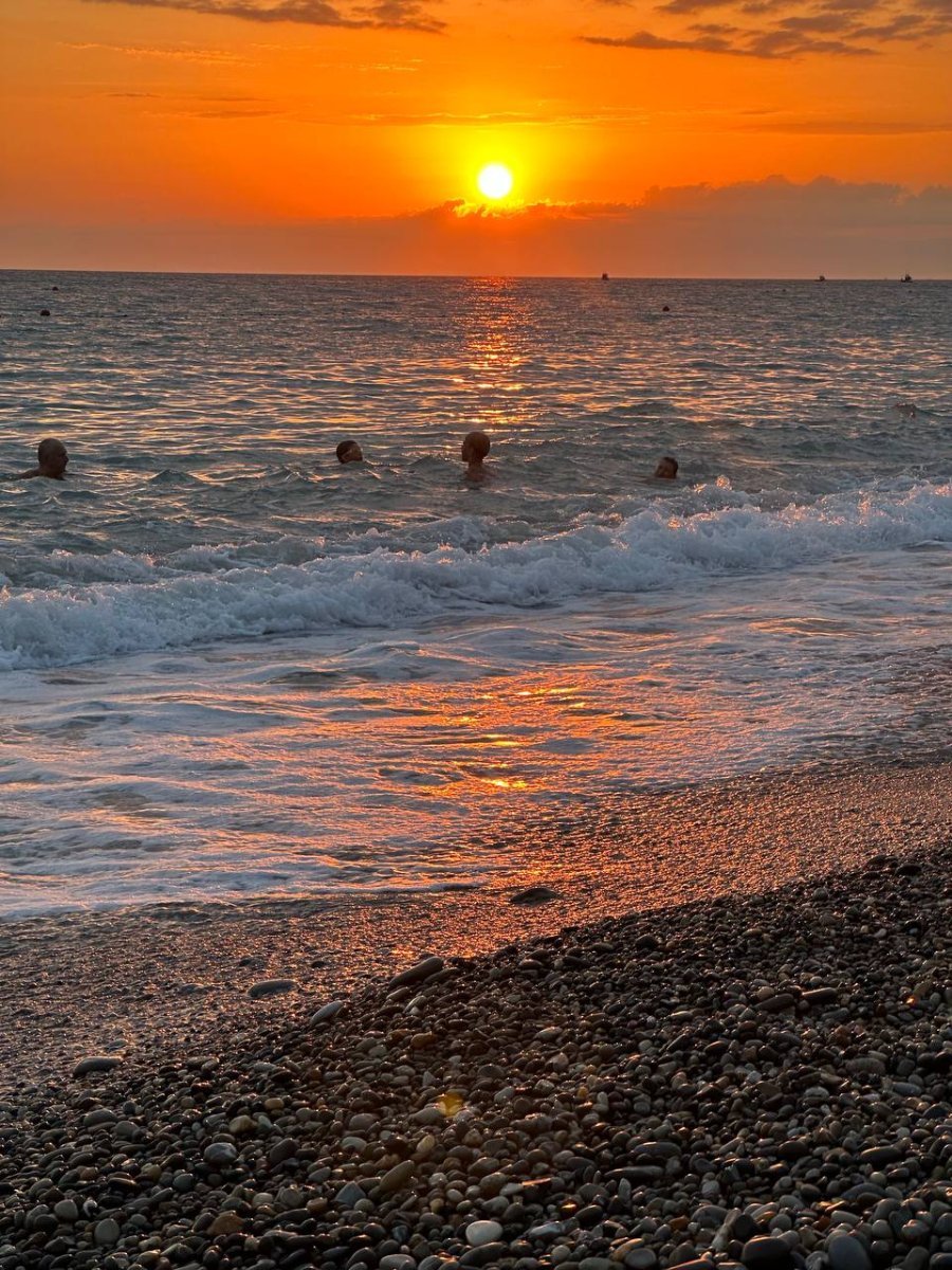 Дети с самого первого дня просили. И вот звёзды сошлись - то есть море успокоилось) Течение было сильное, в сторону Сочи. Устали бороться и прицепились к бую карабином. Водичка была очень тёплая, классно провели время!