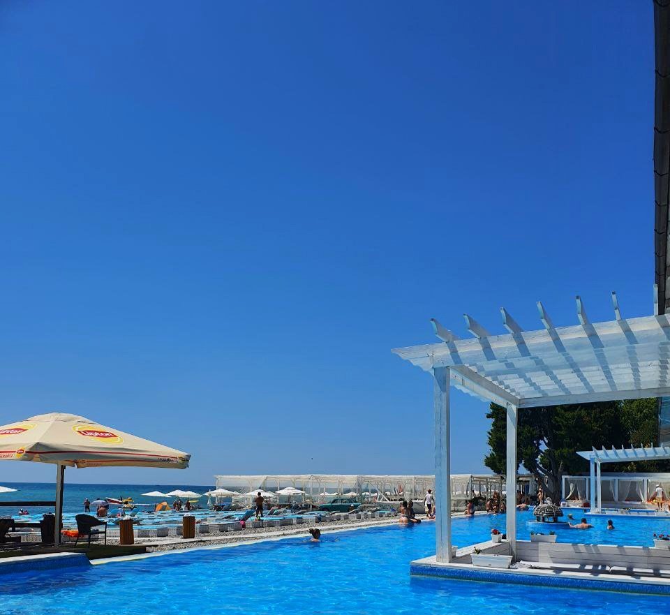 Моречко такое тёплое и с волнушками у берега, наблюдала как люди радостно покачиваются на них, а сама почёсывала свою солнечную крапивницу в тенёчке) Купалась в бассейне, в нём водичка 29 градусов)