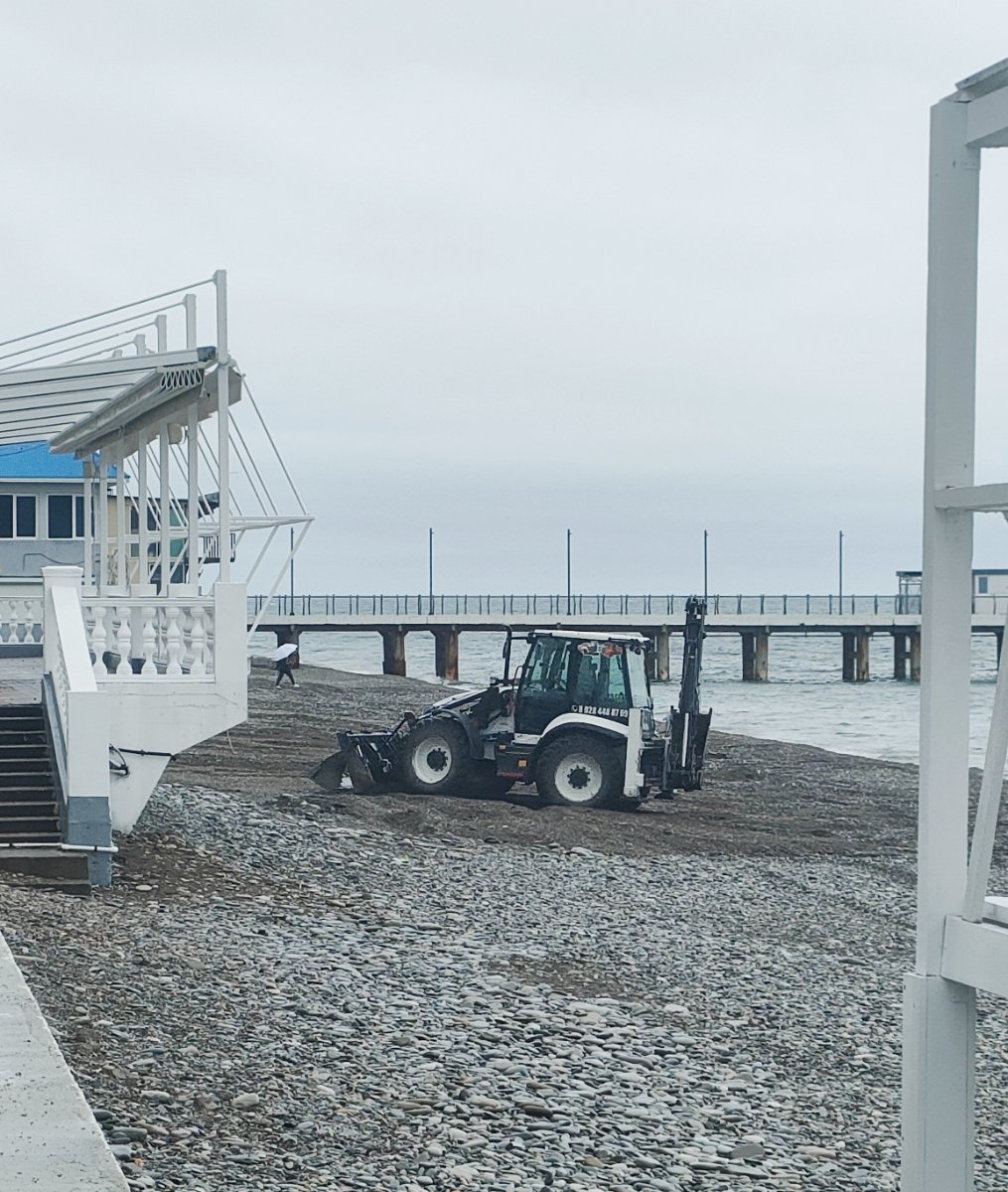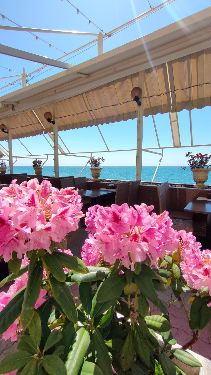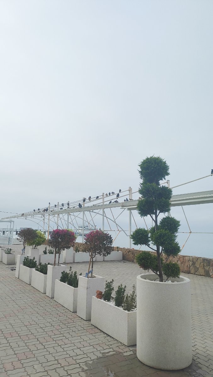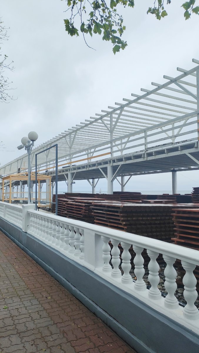 На набережной вовсю готовят кафе к открытию, завозят мебель, цветы, растения...