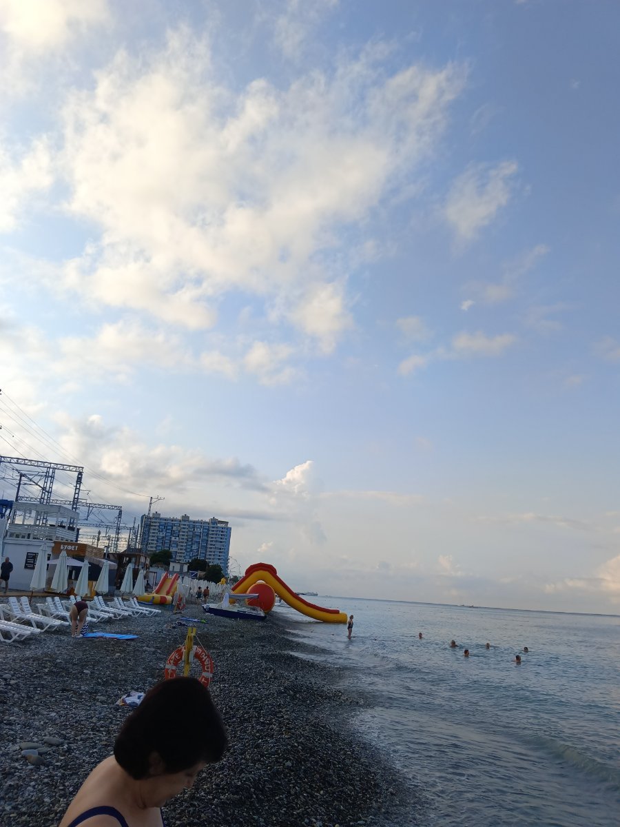 Всем доброго дня. Море сегодня теплющее. Волны. Но приятные. На улице ооочень тепло. Слава богу душнота эта прршла. В общем кайф. Наслаждаюсь последними деньками отпуска. Вчера в парке гуляли вечером. Народу тьма. Зашли в альпака парк но жабка задушила пойти внутрь поэтому купила себе друга.