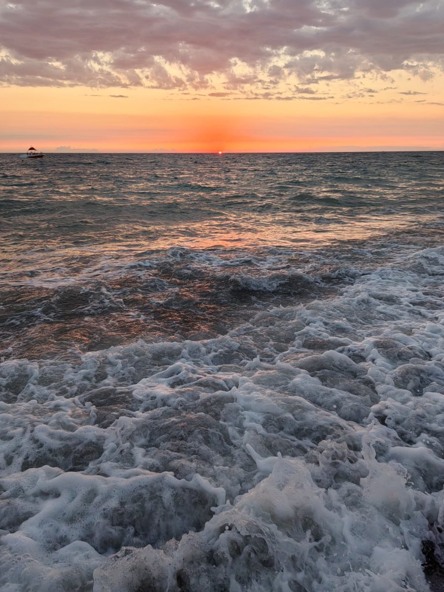 Сегодня купаться можно было только в первой половине дня, потом начались волны, но погода комфортная, солнечно, прохладный ветерок