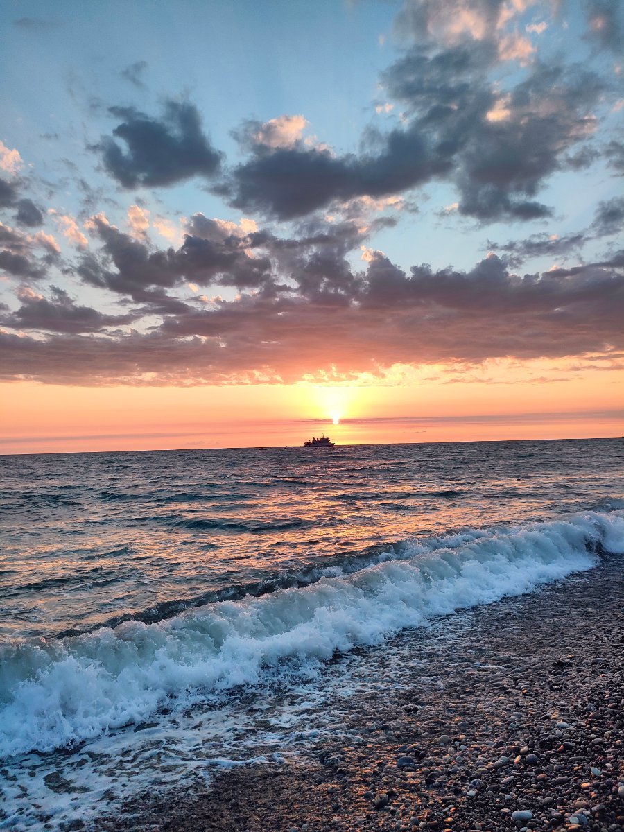 Мы приехали, разместились. В поезде всё было чудесно, но мы чуть не опоздали на него :dry: Это в транспортной ветке расскажу. А пока успела сходить по магазинам и, конечно, сделать первый вечерний заплыв с останков Свирского пляжа. Почему только вечерний? Ну, так сложилось. Когда ехали после Туапсе, смотрели в окно. Реально, людей мало. То ли пересменка в начале месяца, то ли нынешняя не особо солнечная погода. И в море там было мутновато.
