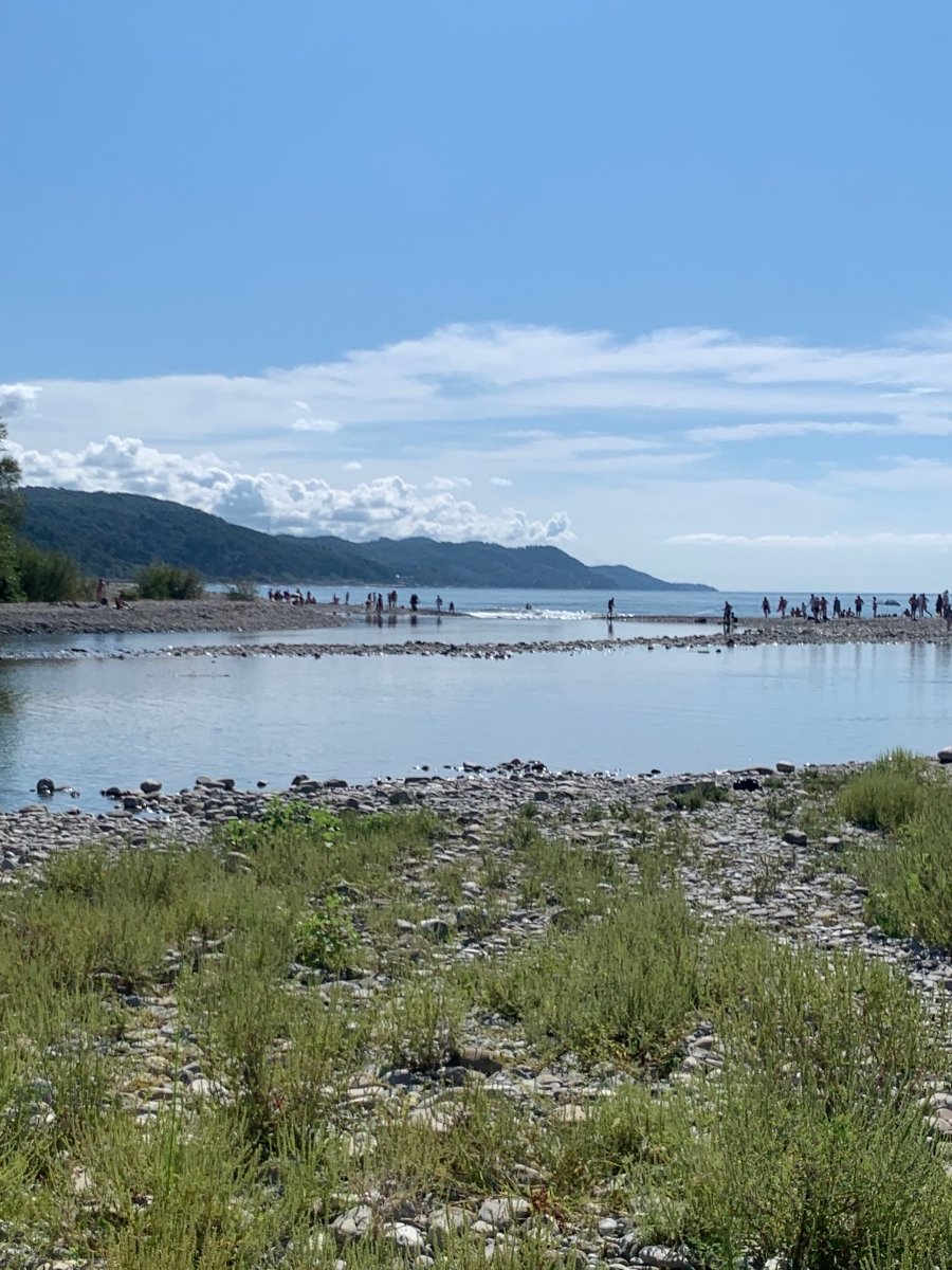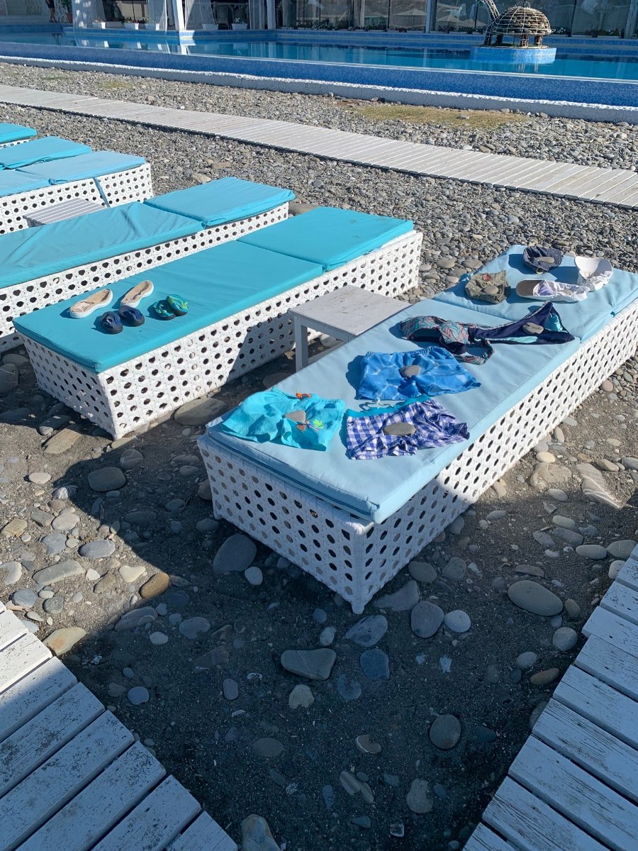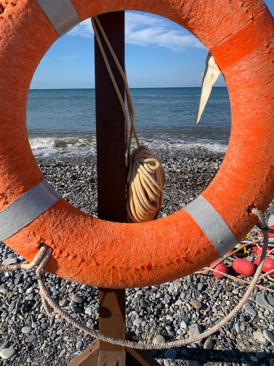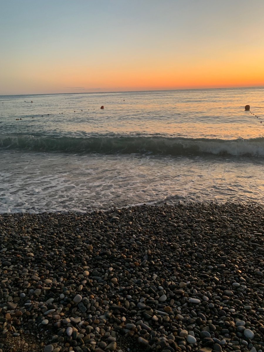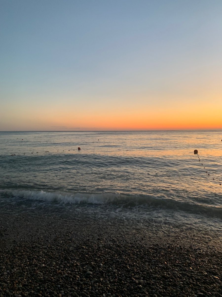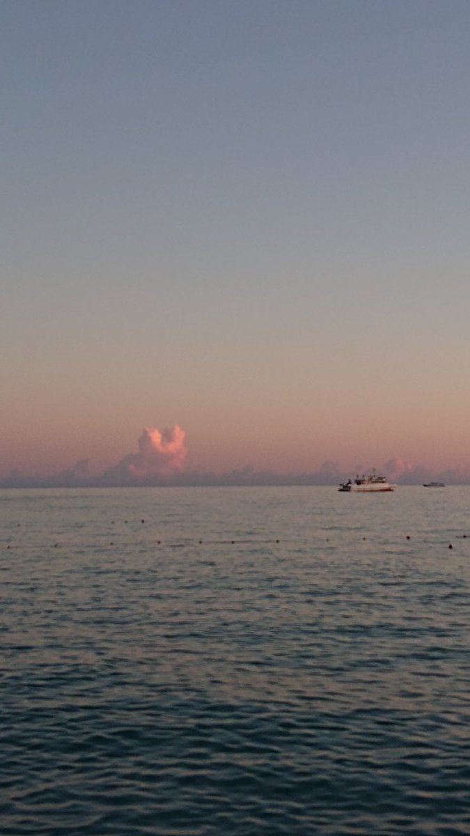 Море волнуется, шумит камнями. Волны такие же, как и вчера. Но  мы были вдвоем и я купалась. Сейчас одна. Только ноги помочила. Вода… ну, в первый секунд «ах!», потом - да норм :)) мутная только