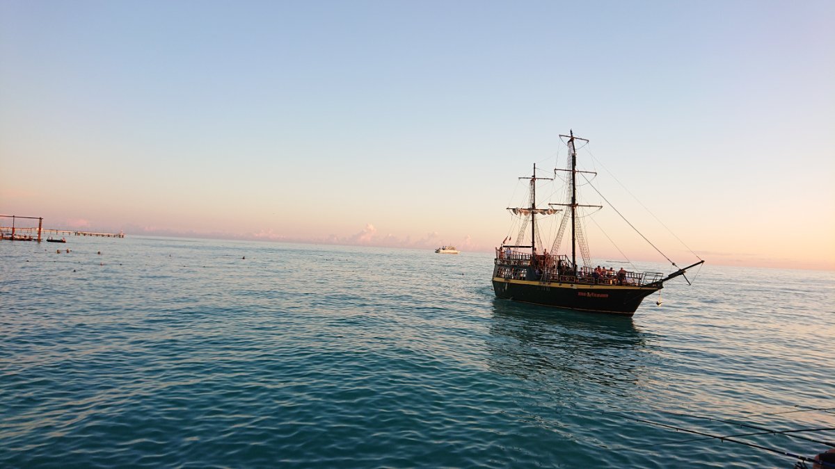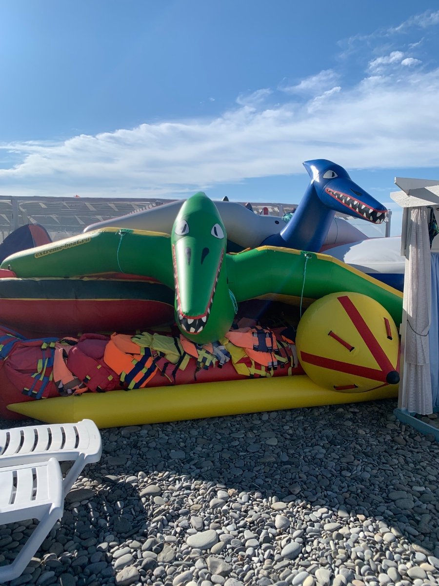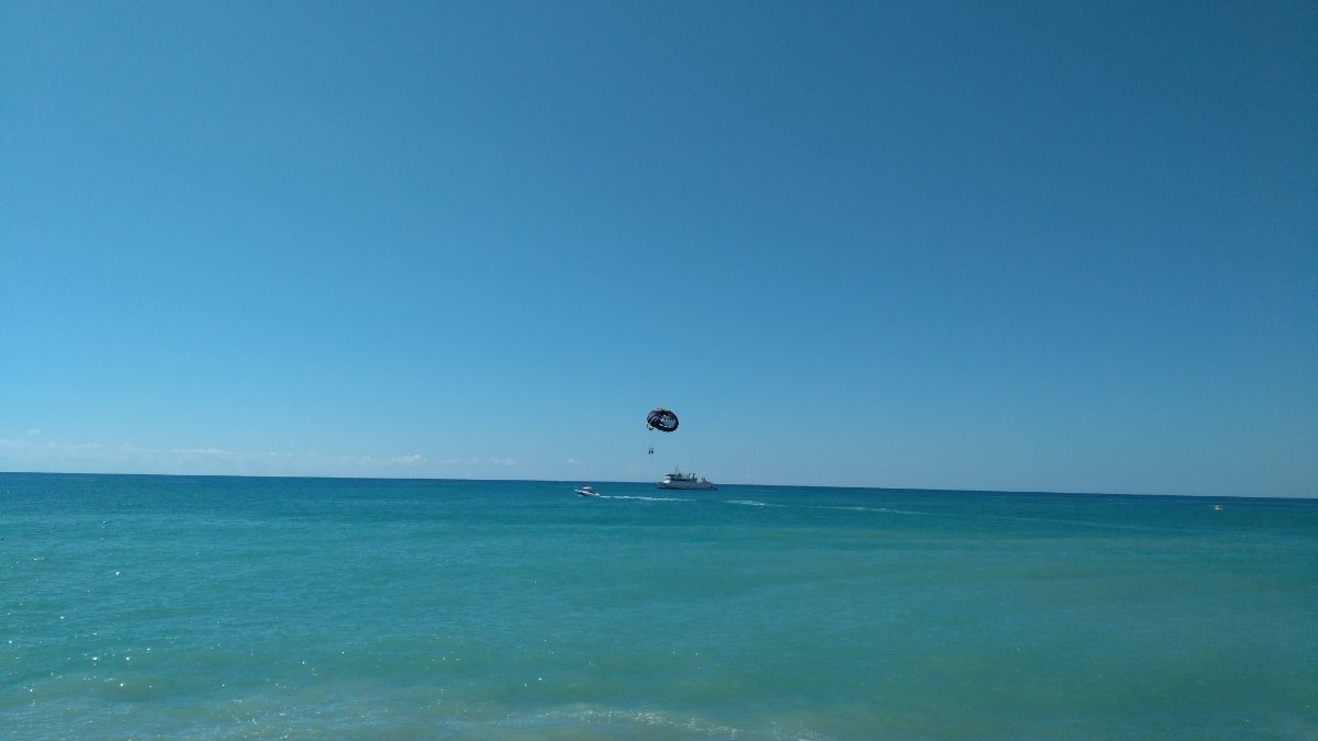 Сегодня, смотрю, летают и парашютики и на катание на банананах завлекалочки выкрикивали. Вчера, кажется, не летали и не катали, хотя штормит одинаково. Вода такая же грязная.
