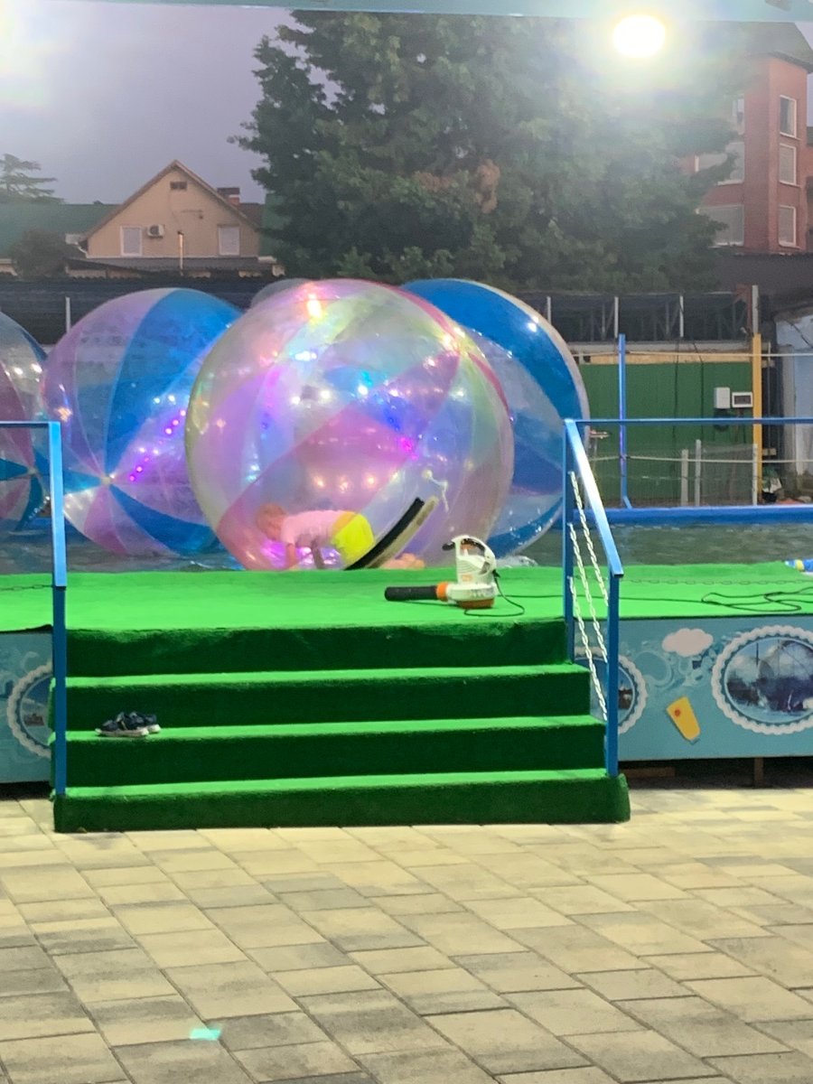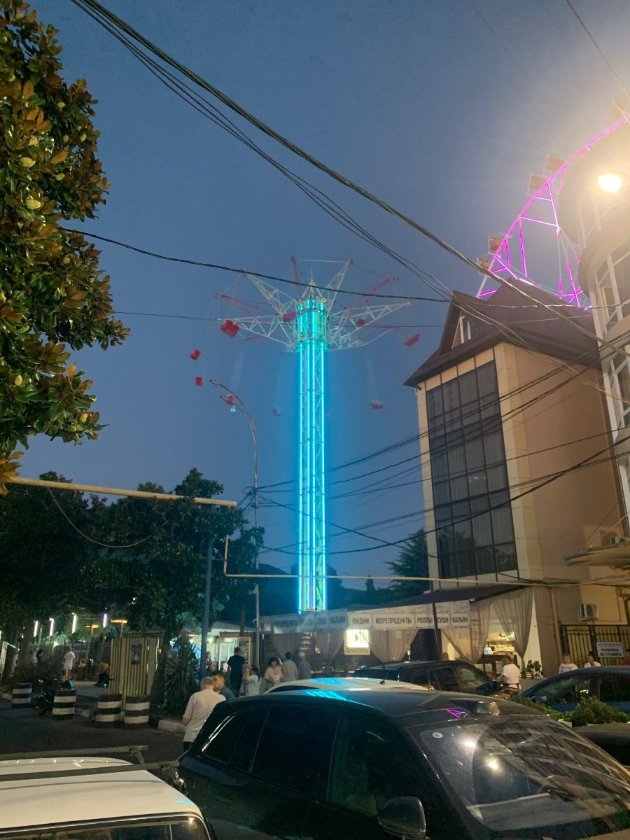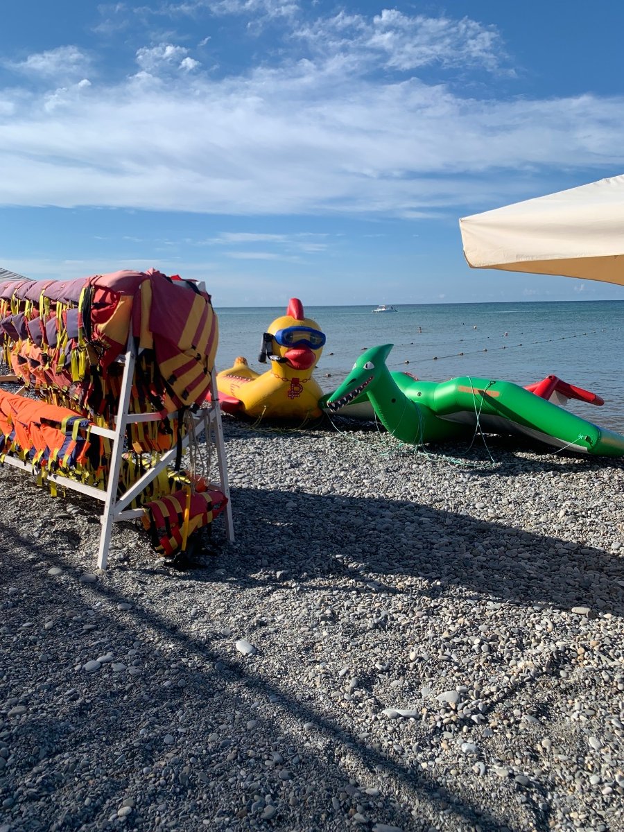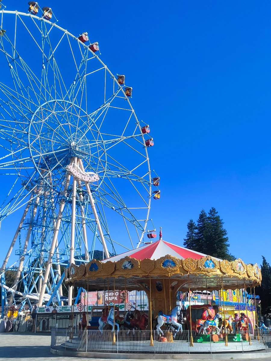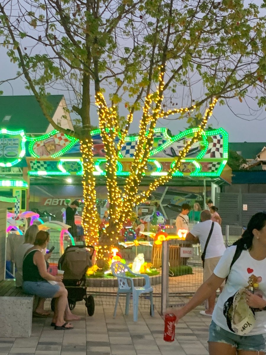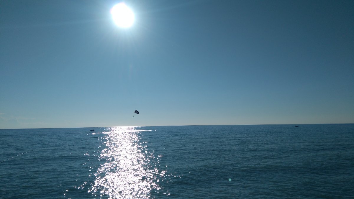 Аттракционы работали, парашюты летали, даже катамараны плавали. Солнышко палило, как в середине лета.
