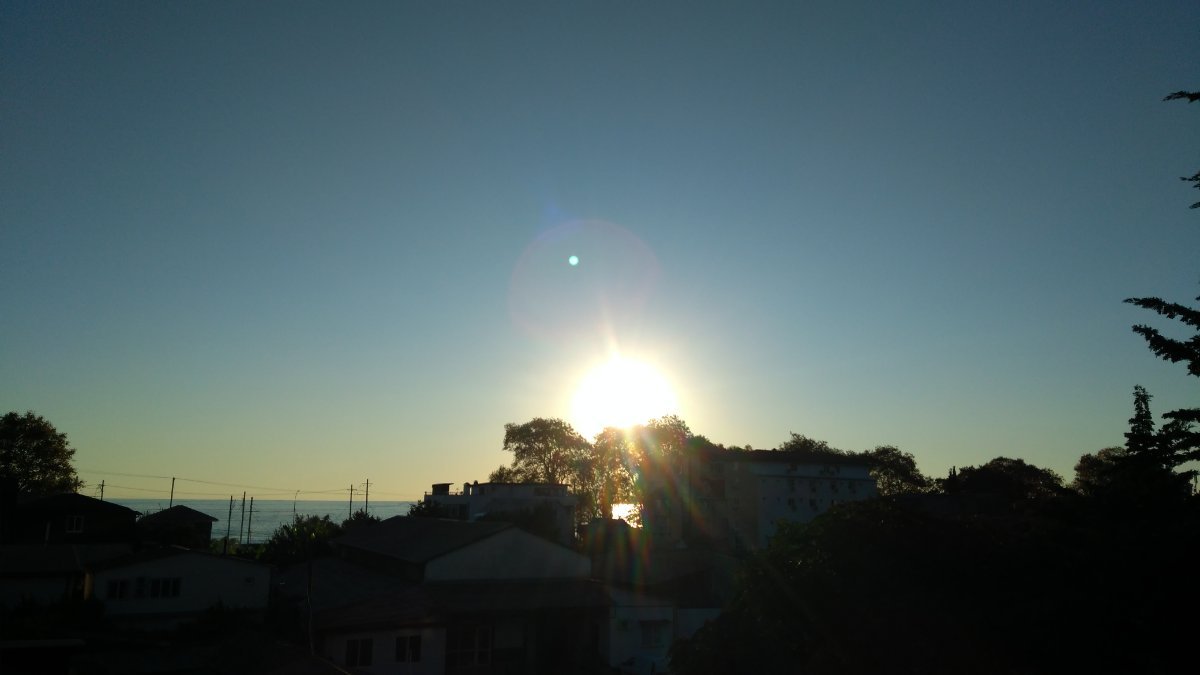 Всем хорошего доброго утра. К сожалению, моря с моего окна не видно,  да небо только кусочками, сквозь деревья просвечивает. На балконе ветерок сильнее, чем хотелось бы (вечером вообще был полный  штиль)и  пока кажется немного прохладным.
