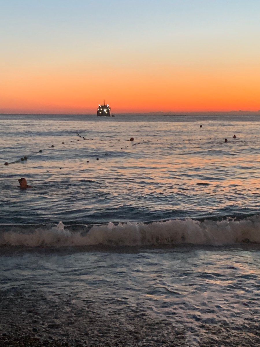 Сегодня, как и все эти дни, тепло, но вода теплее воздуха, особенно , если отплыть подальше