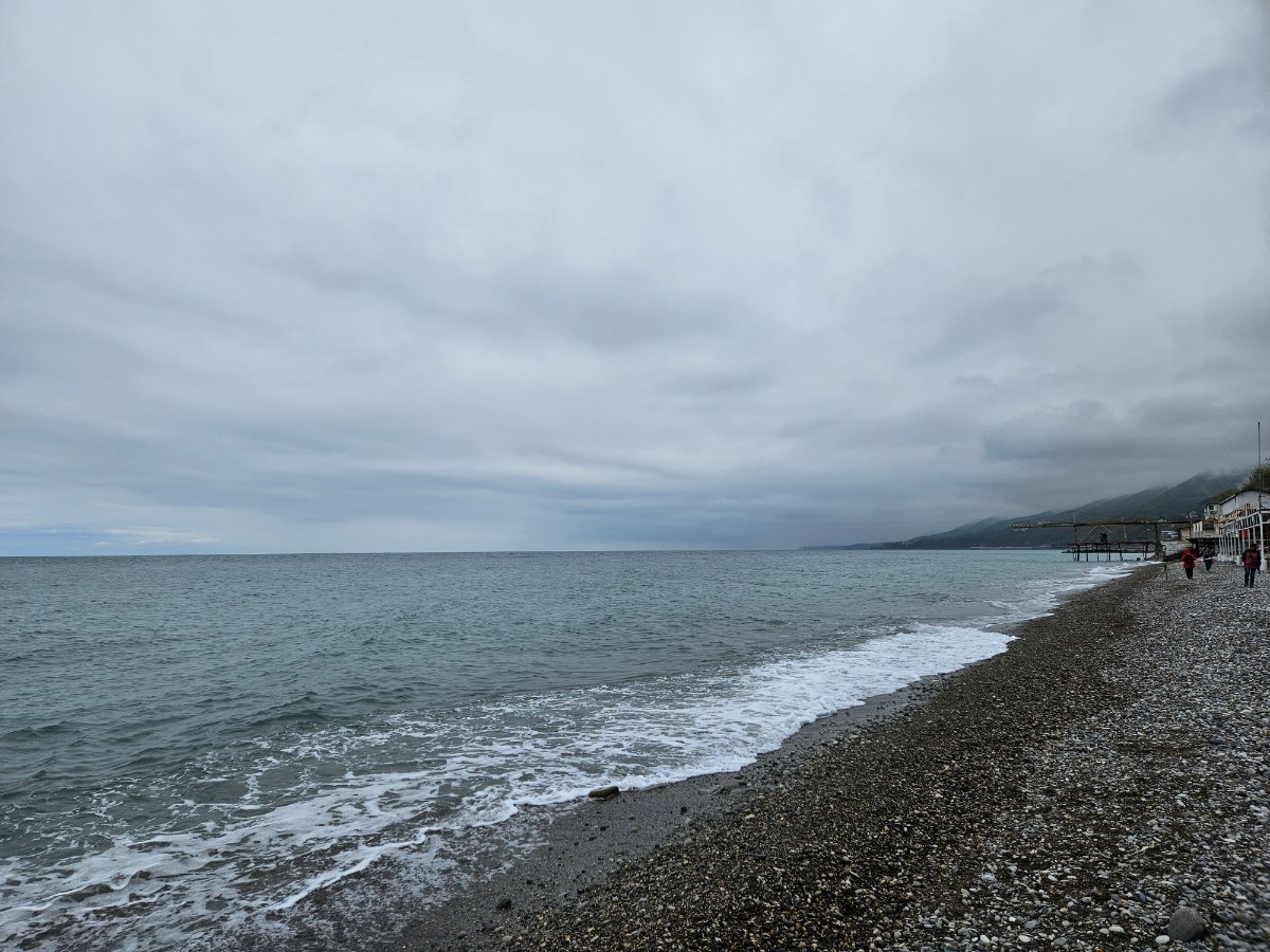 Спускались к морю в промежутках между дождем.