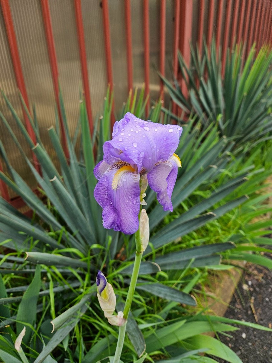 Санаторский автобус ходит по расписанию, но его было долго ждать, пошли наверх ножками. По пути нас настиг дождь. Не размокли). Я развлекалась, фоткала мокрые цветочки. Ирисы только начинают цвести, глицинии отцветают.