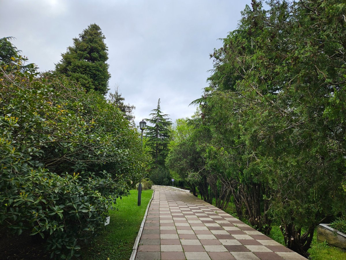 После завтрака немного погуляли по территории. Свежо. Но солнце уже выгдядывало! Есть надежда, что выглянет позже. Главное, дождя нет, очень уж противненький вчера был.