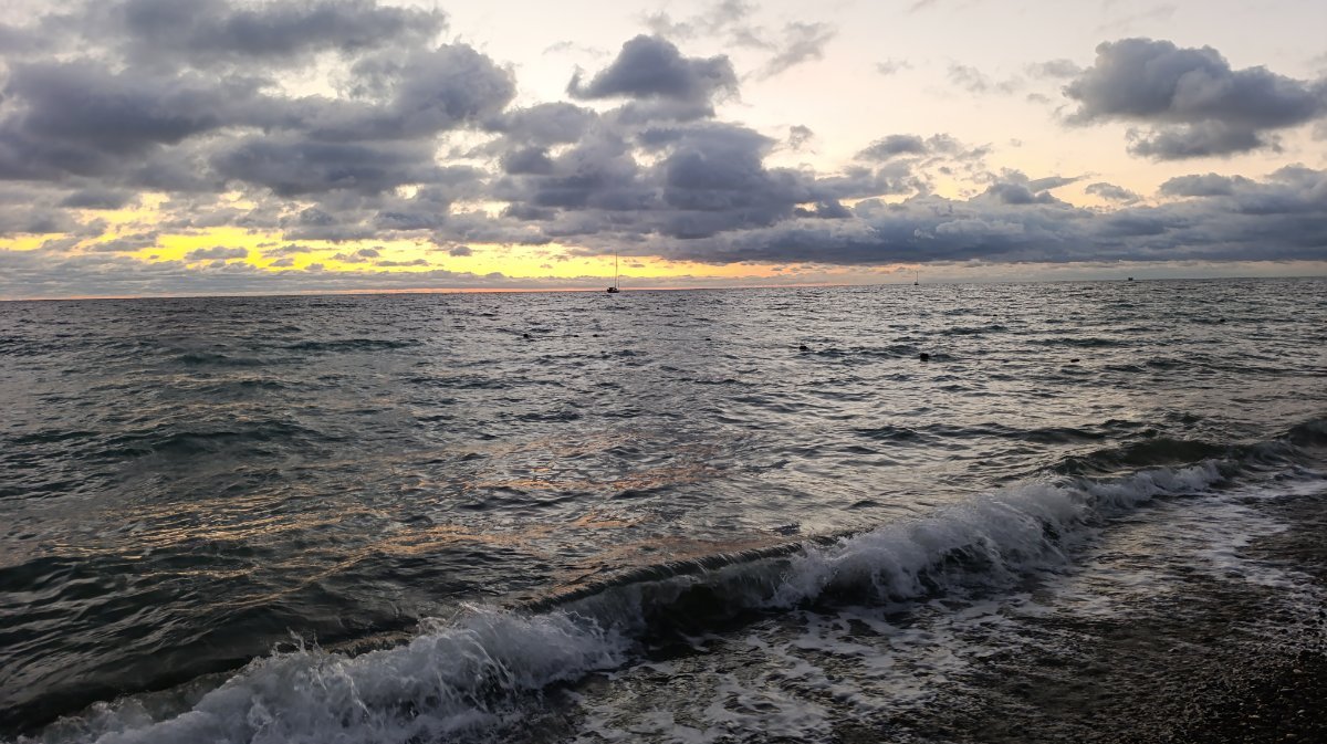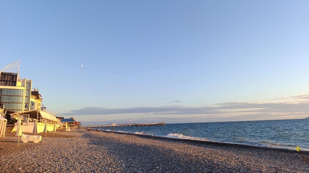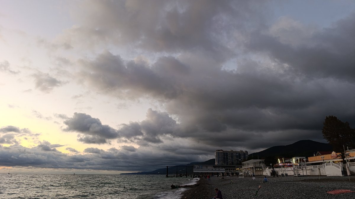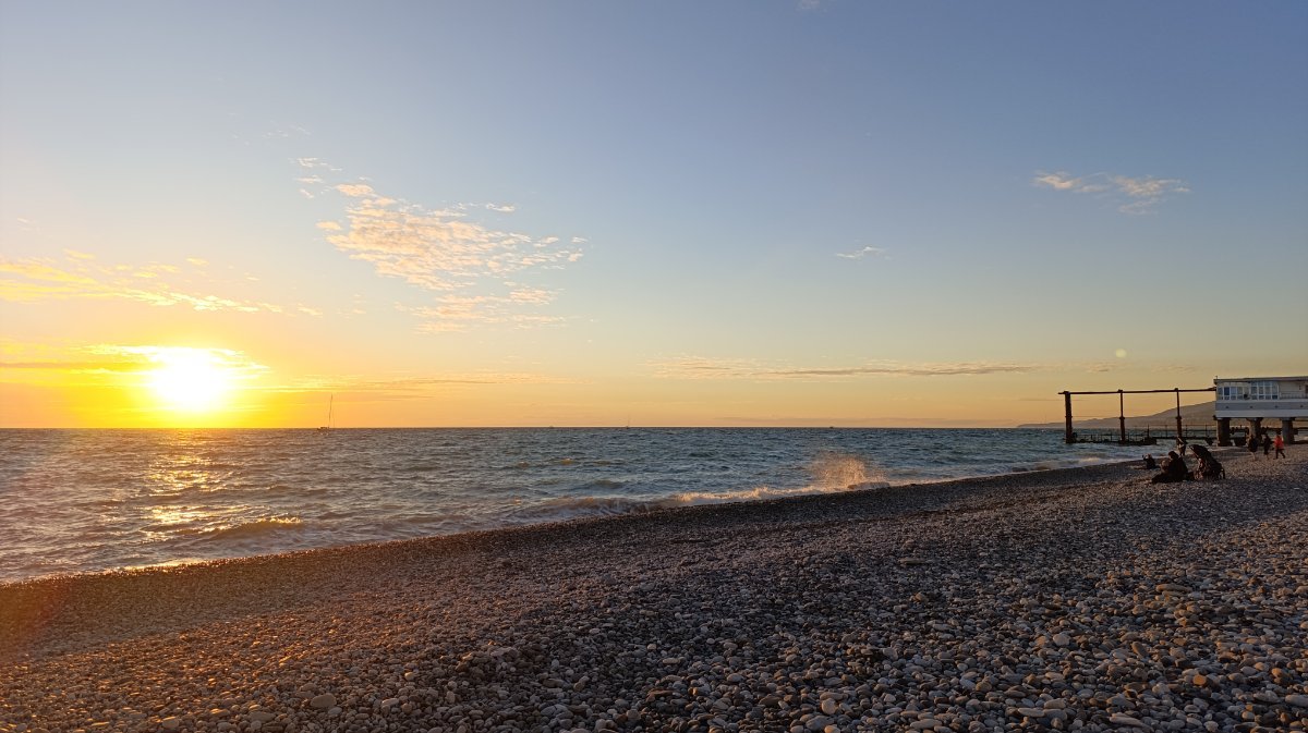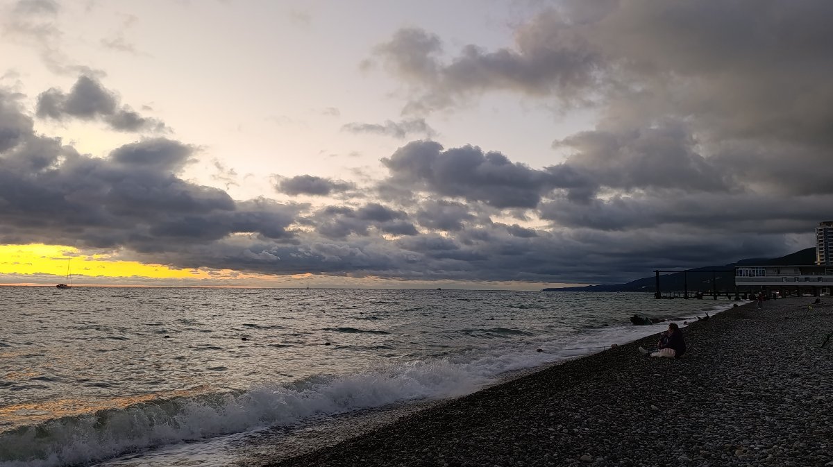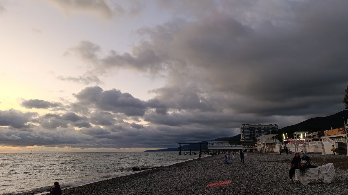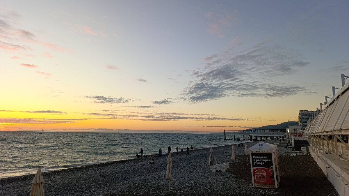 Мы сегодня поздно позавтракали и пошли на море, сидели на солнышке, грелись, ветер холодный, как то не захотелось заходить в море, решили пройтись, прогуляться по берегу, дошли до пляжа Морская звезда, вышли напротив ТЦ Бирюза и на автобусе доехали до парка, немного в парке посидели и в 4 часа пришли в номер. Муж ходил снимать закат, говорит ветер холодный и сильный.