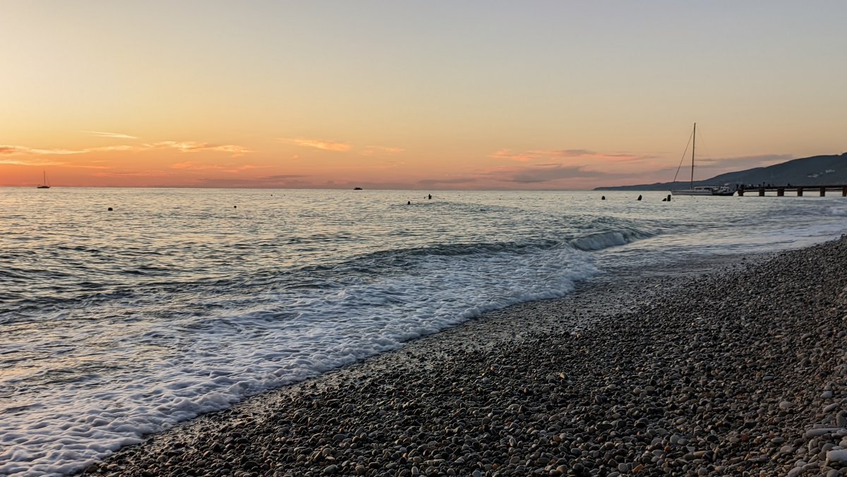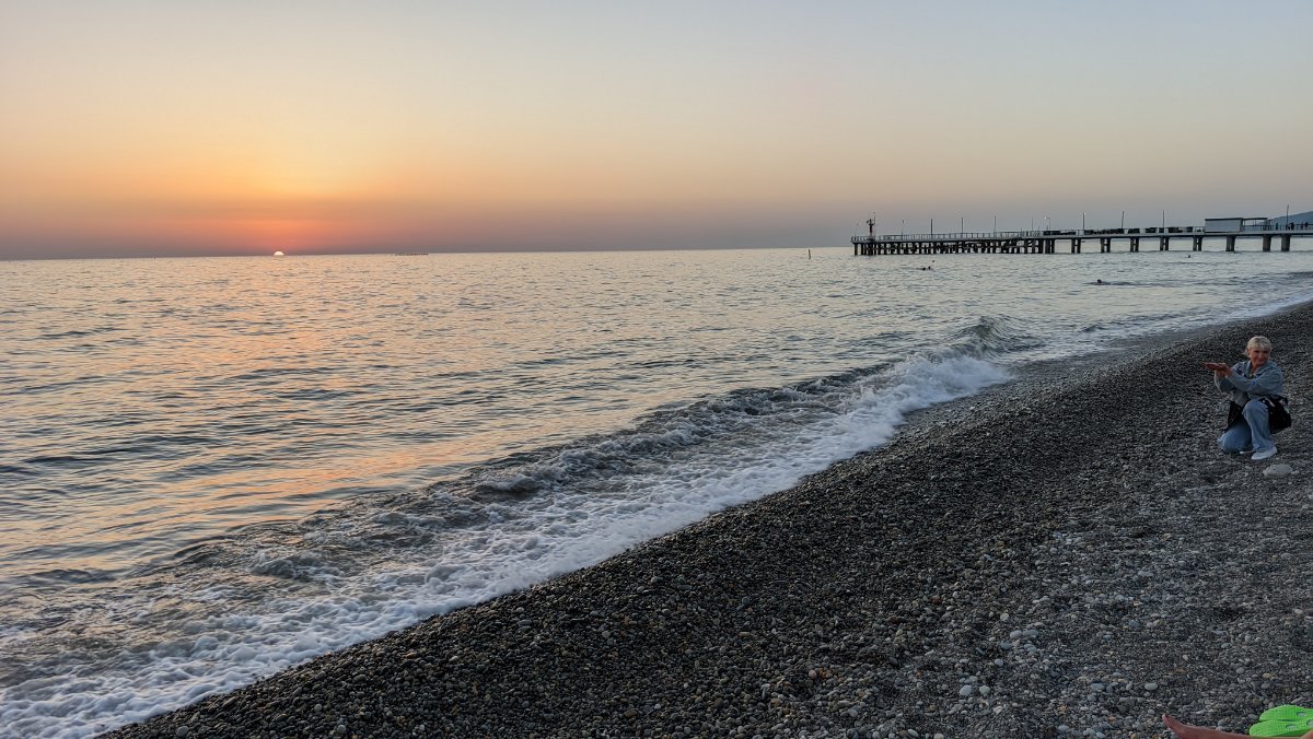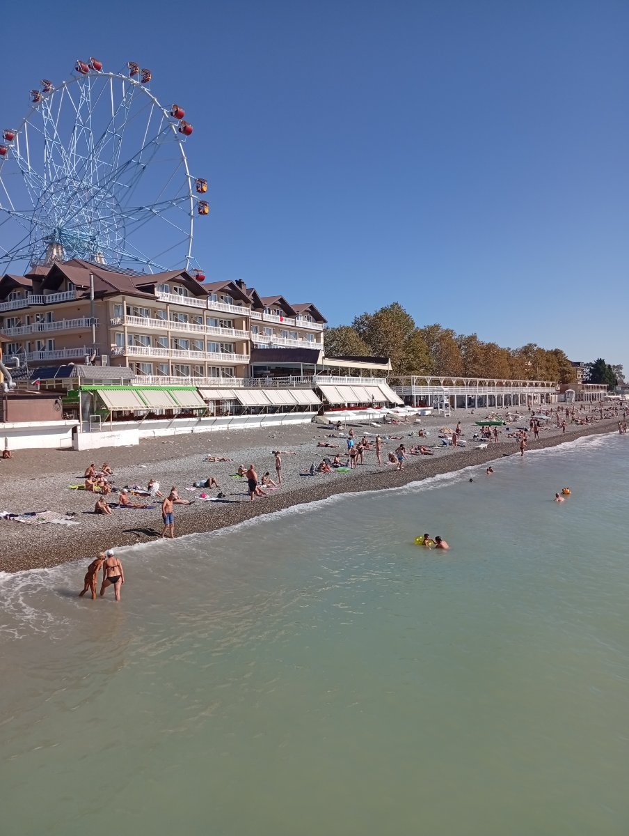 Еще один солнечный прекрасный день в Лазаревском, сегодня море волнуется, думала, думала и все таки решила поплавать, заходить легче, чем выходить, на выходе меня волна сбила, очень ступенька из камней была высоковатой, так что накрыло меня волной, но все благополучно завершилось. Заходить немного прохладно, но потом вода кажется комфортной, второй раз конечно не решусь. Вчера вечером часов наверное в 11 и позже ревели сирены, предупреждали по радио о беспилотной атаке довольно долго это продолжалось, где то около часа ночи стало тихо и мы заснули. Завтра нам уже уезжать, день обещают нам солнечный и даже жаркий, надеюсь что получится и завтра поплавать, лишь бы море было бы поспокойней.