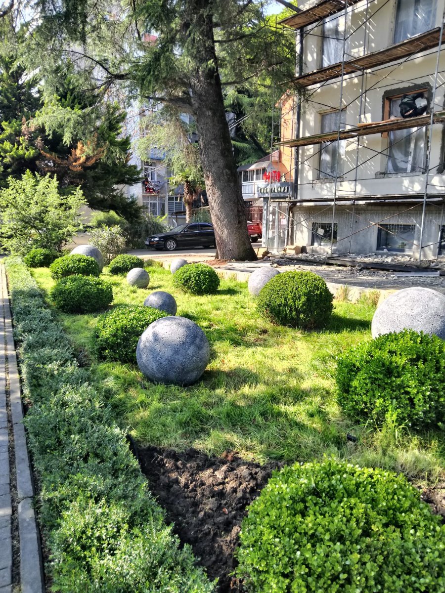 Сегодня полноценный лечебный день: до обеда процедуры, после бассейн. После ужина погуляли по территории, муж не захотел "в город": прохладно. Немного фото с территории.