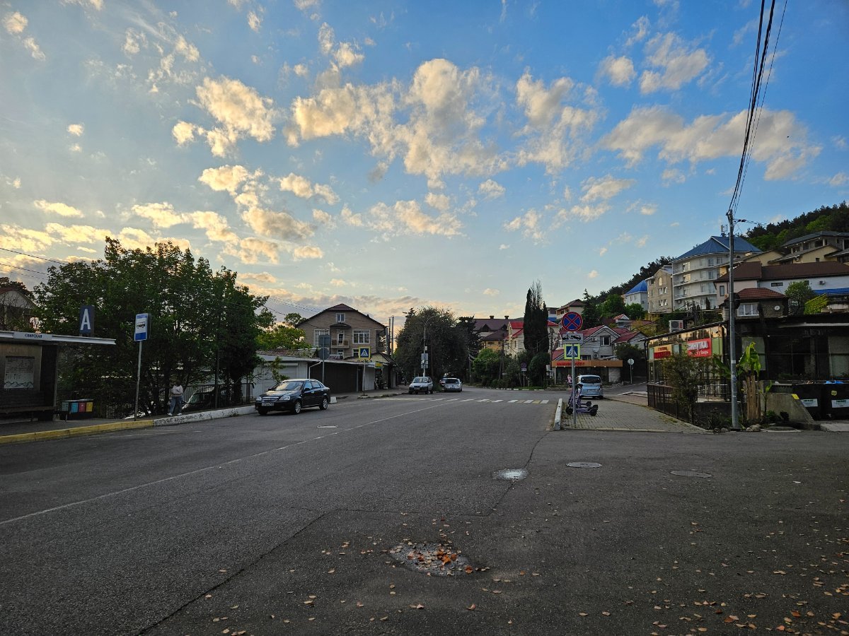 Ну а обратно просто шли по другой сторлне Победы. Наверх к санаторию опять поднимались пешком. Послезакатье уже с одной из площадок после санаторского КПП.