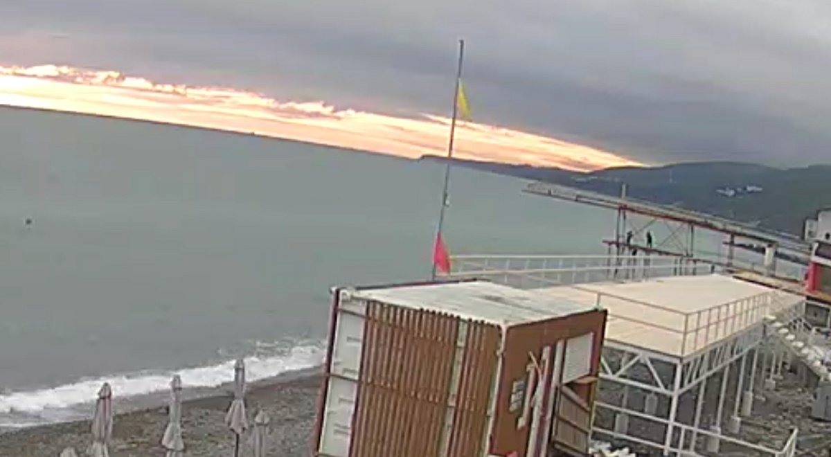 Обратите внимание, на мачте жёлтый флажок, а в море появились буйки.