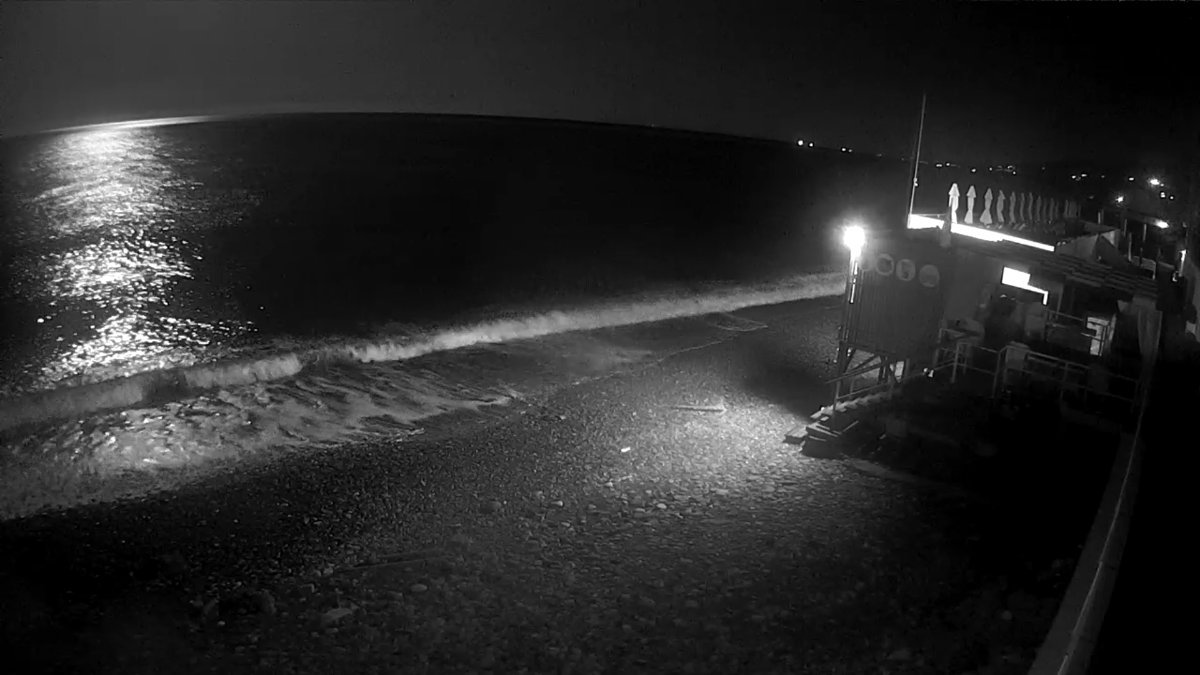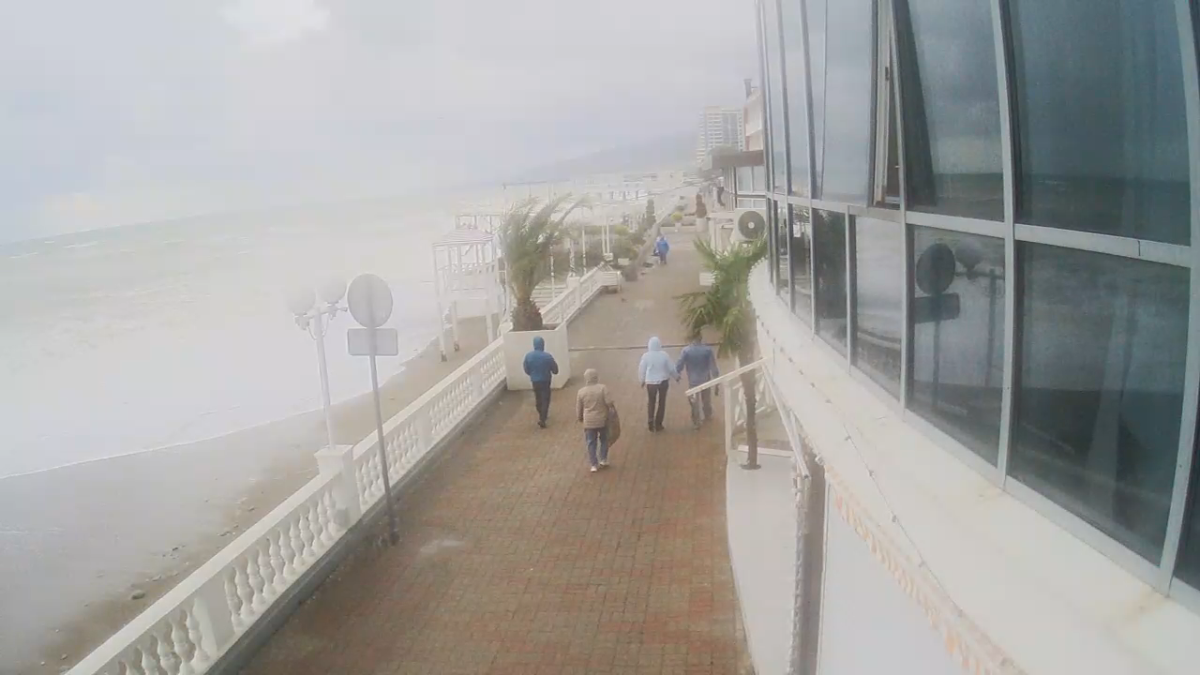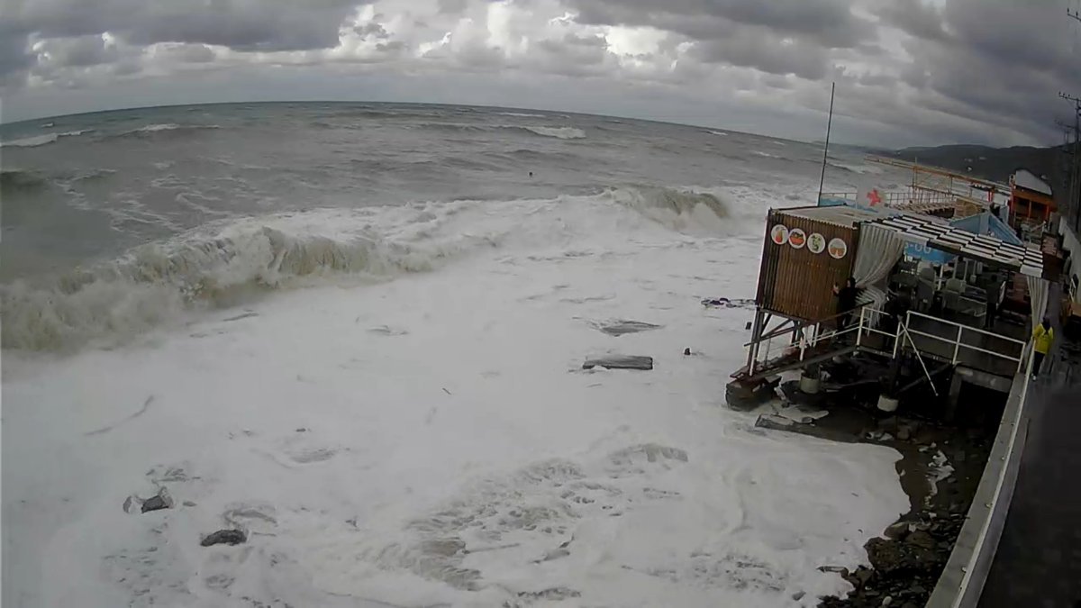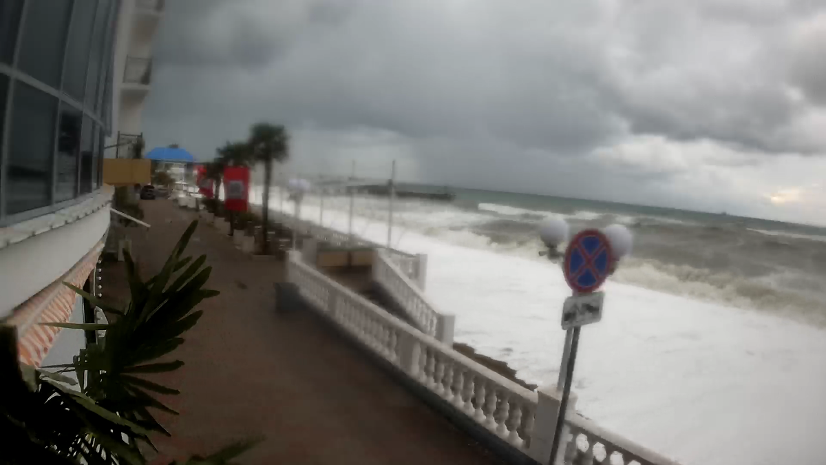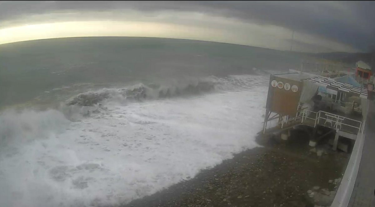 Ночью море спало себе тихонечко, а проснувшись, разгулялось, разошлось. Волны, видно, большие. Мужчина, что на скрине, так и не решился поплавать. Постоял пару минут в воде и вернулся на берег.
