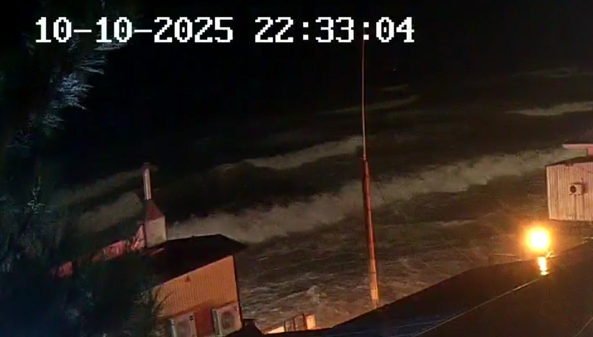К утру шторм не утихает. Пень в Рыбацком уже смыло