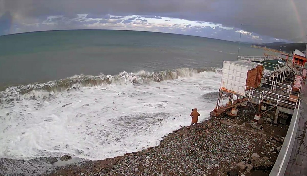 На улице тихо, пустынно. кажется, что картинка зависла, если бы не накатыващие волны:)