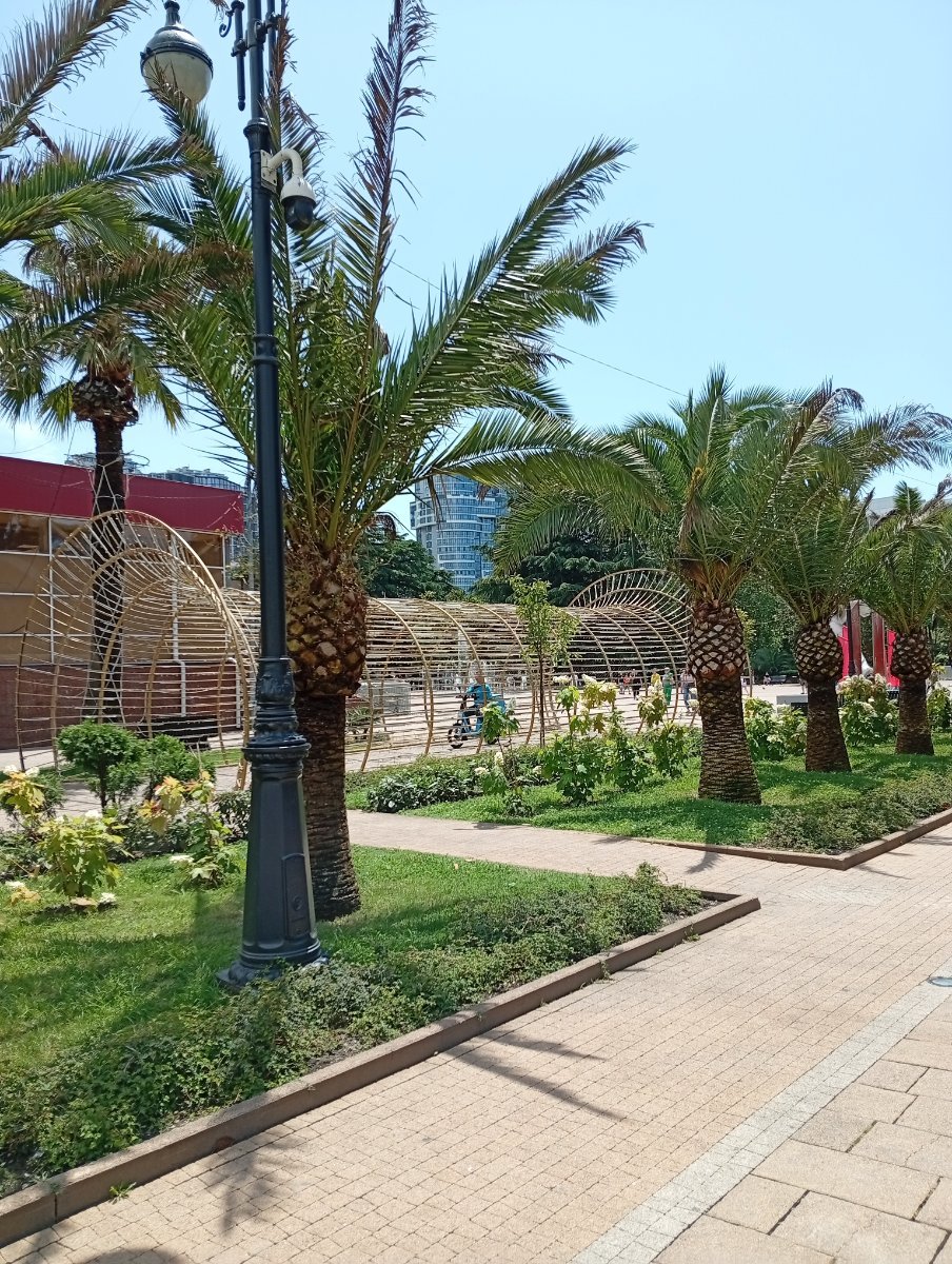 Потом пересидели дождичек под раскидистым кедром ливанским (это умная камера так сказала 🤣), и опять через порт пошли на набережную. Бродили бесцельно, покупали вкусняшки, сидели на лавочках, то поднимались, то спускались на второй уровень набережной. Мы получили удовольствие от сегодняшнего дня. Гуляли в своё удовольствие, без спешки, без целей, много отдыхали (у сестры нога побаливает после перелома, много не находишься).