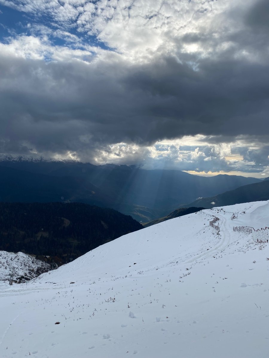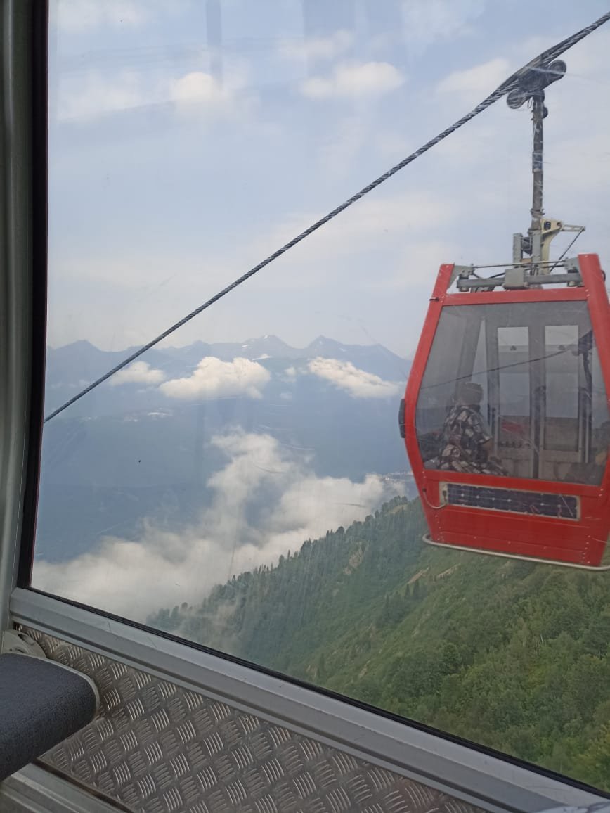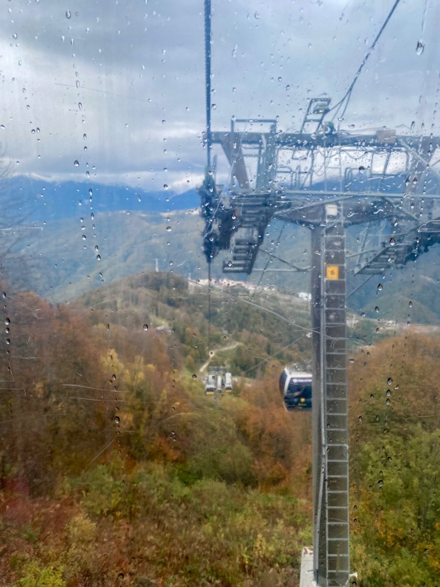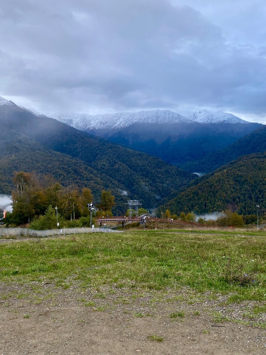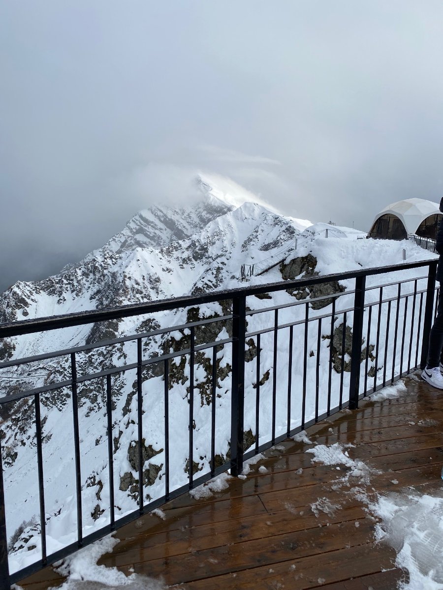 Мы сегодня с последней экскурсией в этом году, побывали на Роза Хутор. Такой контраст между городком и самым пиком, снег и холод на верху.