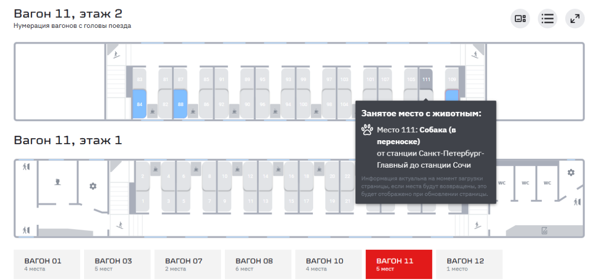 Первый раз увидела: мало того, что информация о пассажире с животным, так еще и каким, и от какой до какой станции!