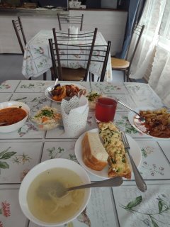 На обеды чередуем Фазелис, Домашнюю кухню и уйгуров. Открыла для себя окрошку у уйгуров.. Боже, как это вкусно, я просто влюбилась. Хотя я ярый сторонник окрошки на квасе, а эта на кефире. Но она просто божественна