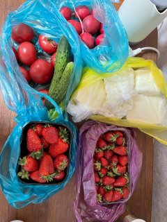 Рынок ТВС ещё работает процентов на 10. Клубника по 350 р. Но очень сладкая. На бывшем рынке Астра, овощи-фрукты дороже, Клубника 380-400 р. Наверное, на рынке Тащян дешевле, но мы туда не заходили, хотя и были рядом.