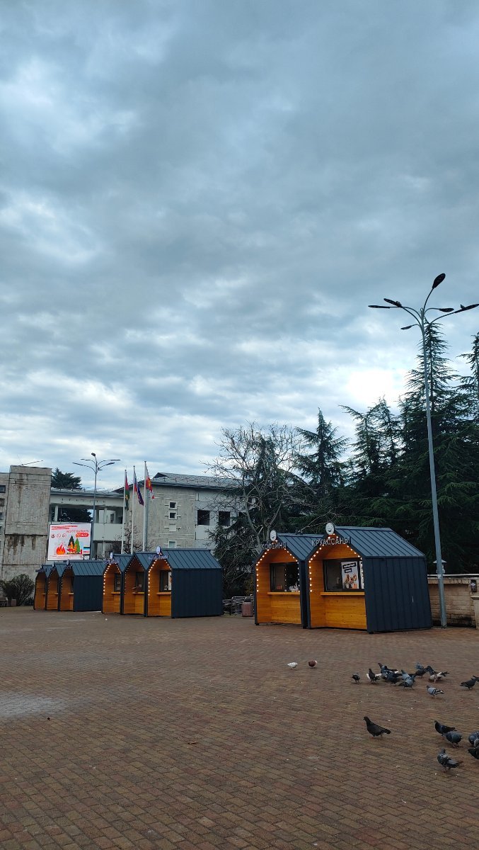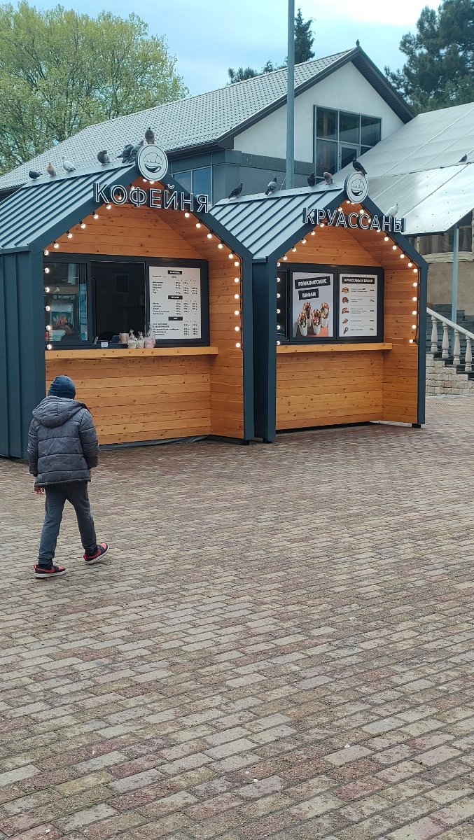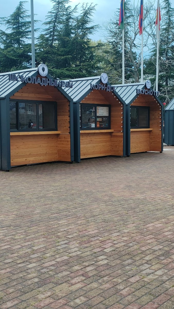 На площади напротив Восхода появились вот такие домики с едой и питьем