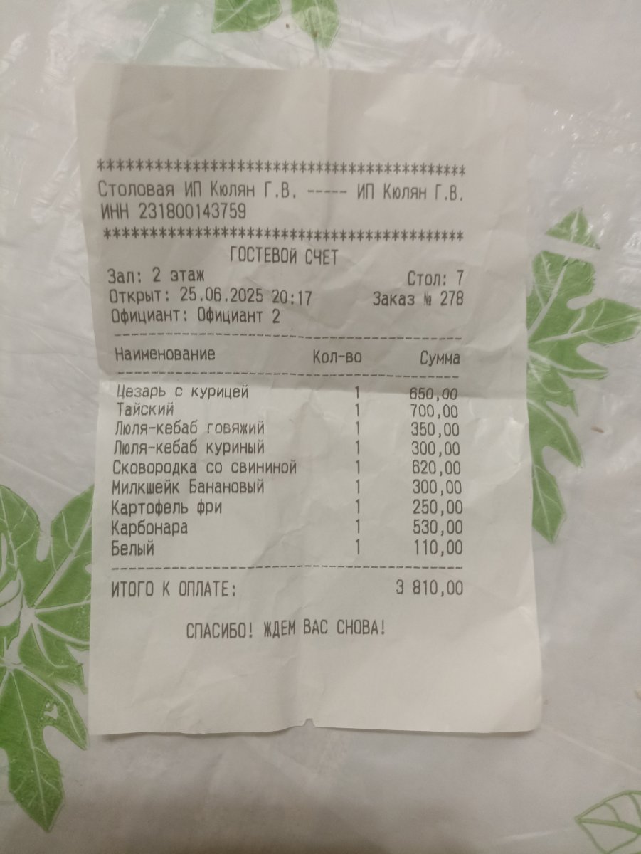 Яло Опубликовано 23 июня Опубликовано 23 июня В такую подозрительную погоду побоялись уходить далеко от дома, пошли обедать в Русское застолье. И всё вроде вкусно, но общее впечатление какое-то неоднозначное. Заказали мы с сестрой по лапше куриной и по блинам (мои с сёмгой, у сестры с мясом), девчонки наши по пельменями, на семью по чайнику чая и десерты. Сначала нам принесли чайники, потом... блины ну, я подумала, может они у них в меню в разделе закусок? Это хоть как-то могло объяснить такую подачу, потом пельмени, и, наконец, суп. Пельмени очень вкусные, блины тоже ничего, суп нормальный, но смутил подозрительный привкус бульонного кубика, и не понравилась развареная лапша и куриные косточки. В какой-то момент, забирая грязную посуду, мальчик-официант поинтересовался, можно ли уже подавать десерты. Конечно можно, мы же уже всё съели Шло время, чай стыл, десертов как не было, так и нет. Когда ждать надоело, мы напомнили о себе, и мальчик их принёс с таким видом, как будто так и было задумано Чек на 1280 рублей. Чаевых мальчик не получил... Хотя наши дети сильно возражали. Но мы им объяснили, что он же должен понять, что что-то было неправильно. В прошлый раз нас всё устроило, и чаевые были оставлены. 12 2 4 1 1 Все будет хорошо, я узнавала!)))