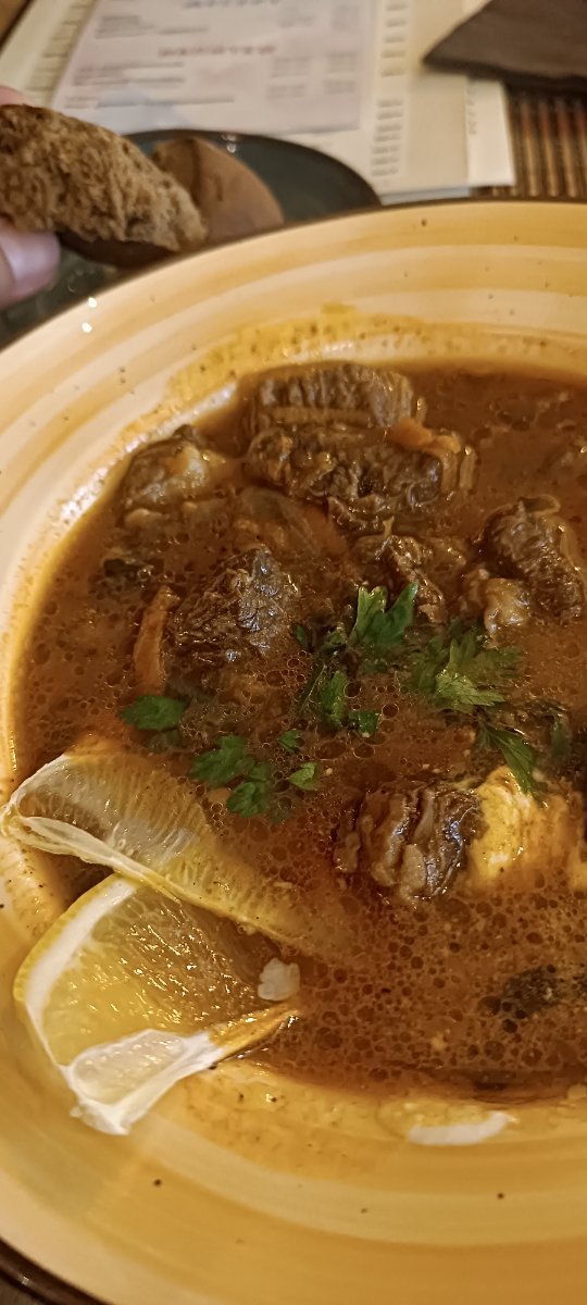 Zoltana Опубликовано 3 августа Опубликовано 3 августа В этот заход, я решила попробовать в Эко Лавке солянку из говядины. Она не стандартная, сборная , а в ней одна говядина в очень насыщенном , густом бульоне со сметаной. Не разочаровали, вкусно! Говядина очень мягкая, хорошо разваренная. К супу принесли булочку - подогретая, хрустящая, тает во рту. Ну и кофе с тортиком ....помню, что надо было что - то фисташковое, но забыла, что профитроли. . Но и тортик хорош. Сочный, свежий. 15 5