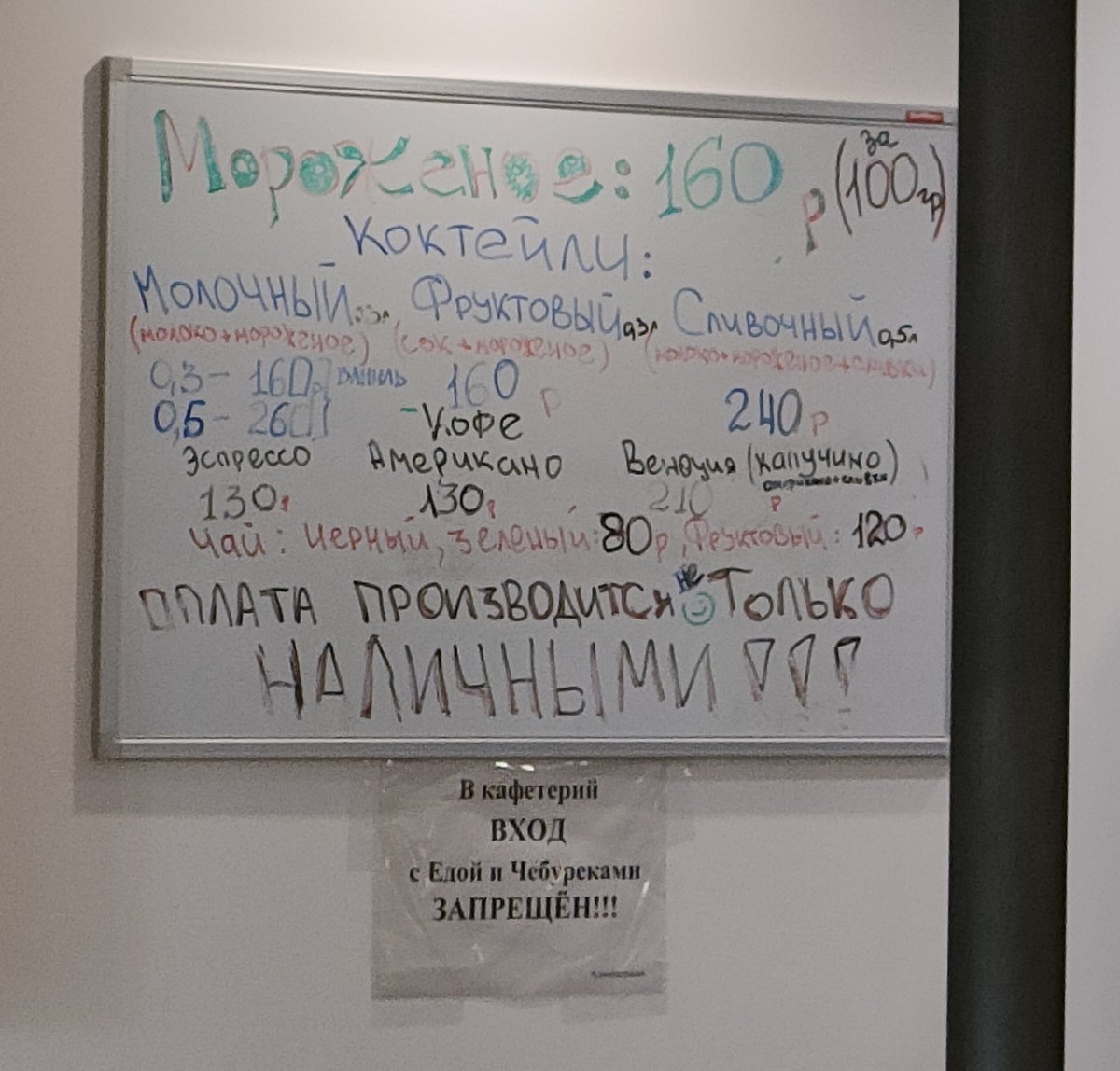 В прошлом году в сентябре у них безналом чебуреки оплачивали. И даже терминал не под прилавком был )).