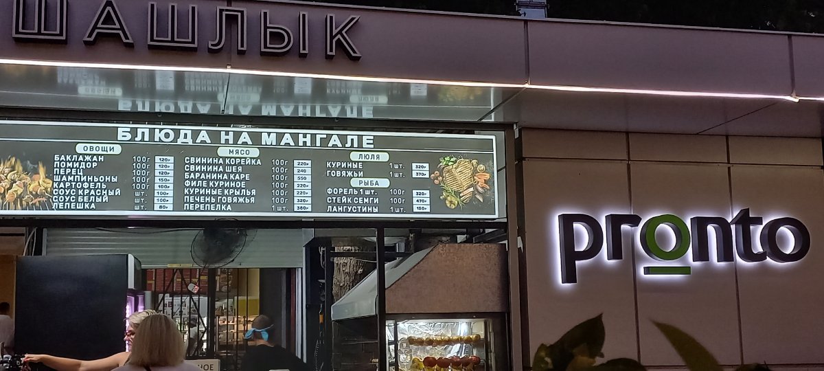 Мы тоже здесь брали,но в прошлом году стали больше покупать на углу Лазарева -Добролюбова.  Там они шашлык и люля, короче все кроме овощей делают в тандыре. Такой вкусный шашлык. И там же у них пиво и вино хорошее. А прошлом году уже под конец отдыха попробовали.  Очень понравилось. И всегда есть форелька коптят там же. Все вкусное!