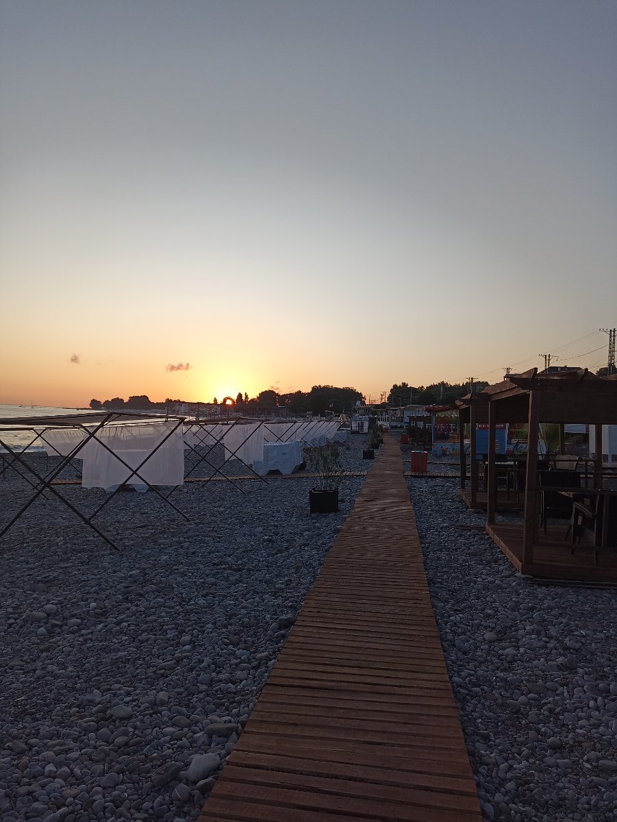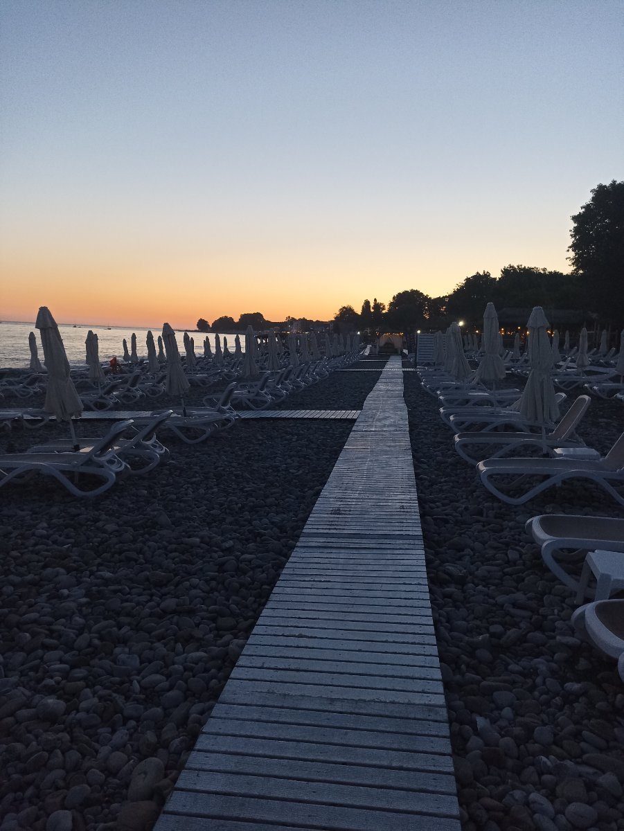 Мы отдыхали недалеко от пляжа "Лазаревское взморье", народа в этом году просто тьма. Я уже давно столько не видела. Поэтому мы решили попробовать пляж санатория "Одиссея". Ездили на автобусе 2 остановки от нас и пару раз на такси. Пляж понравился. Два лежака и зонт на весь день 1000р. Есть детская площадка, народа не так много. Лежаки сетчатые, чистые. Есть столики между лежаками. Торговцы всякими чебуреками, кукурузами не ходят. Но все можно купить на соседнем пляжзе "Касабланка" Там тоже есть детская площадка. Нам это было важно. Заход в море удобный, есть небольшой мостик. Персонал вежливый. Около моря люди располагались на своих ковриках. Слышала, что раньше этот пляж был платный, сейчас нет.