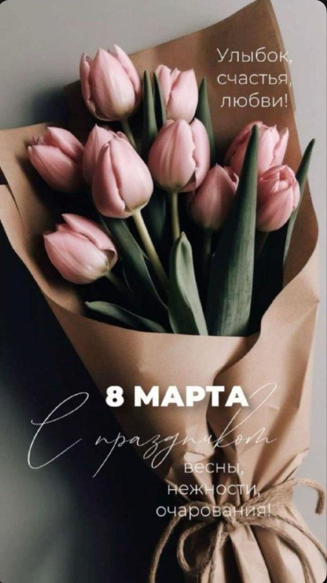 От всей души поздравляю с 8 марта! Пусть жизнь будет наполнена яркими событиями, чудесными моментами и теплотой. Желаю, чтобы настроение было по-настоящему весенним. Желаю удачи и благополучия. Пусть каждый день будет лучше предыдущего. Пусть окружают только искренние и понимающие люди.