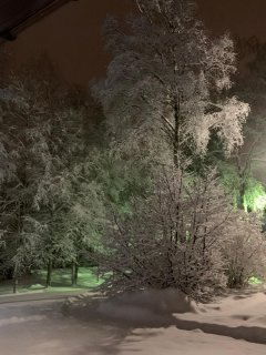 В Московской области опять зима. Снег идёт во всю. У меня окна выходят на лесополосу. Ёлочки в снегу. Так красиво.
